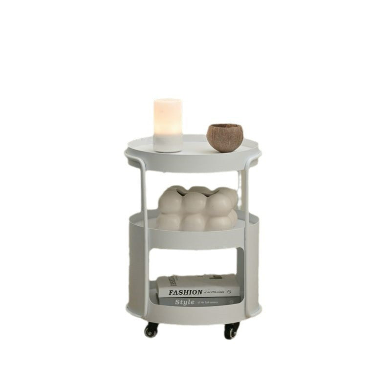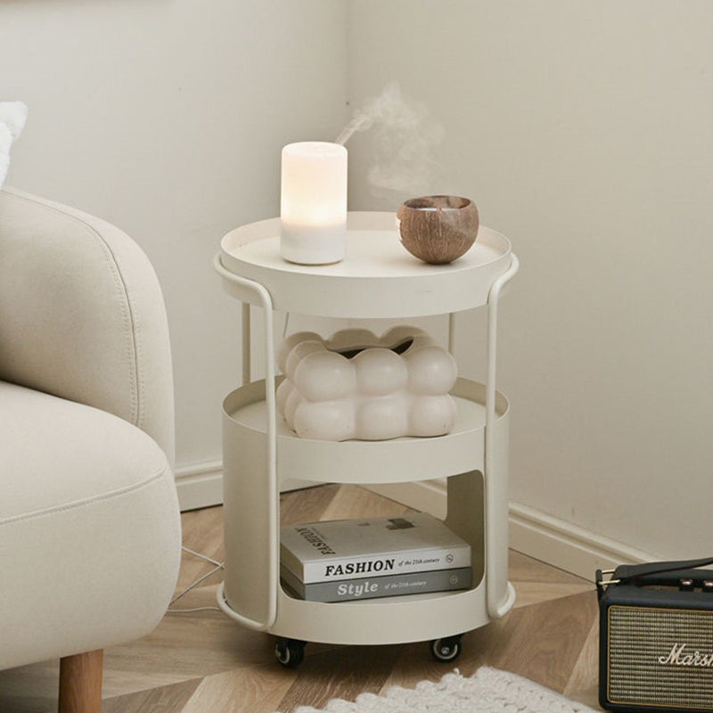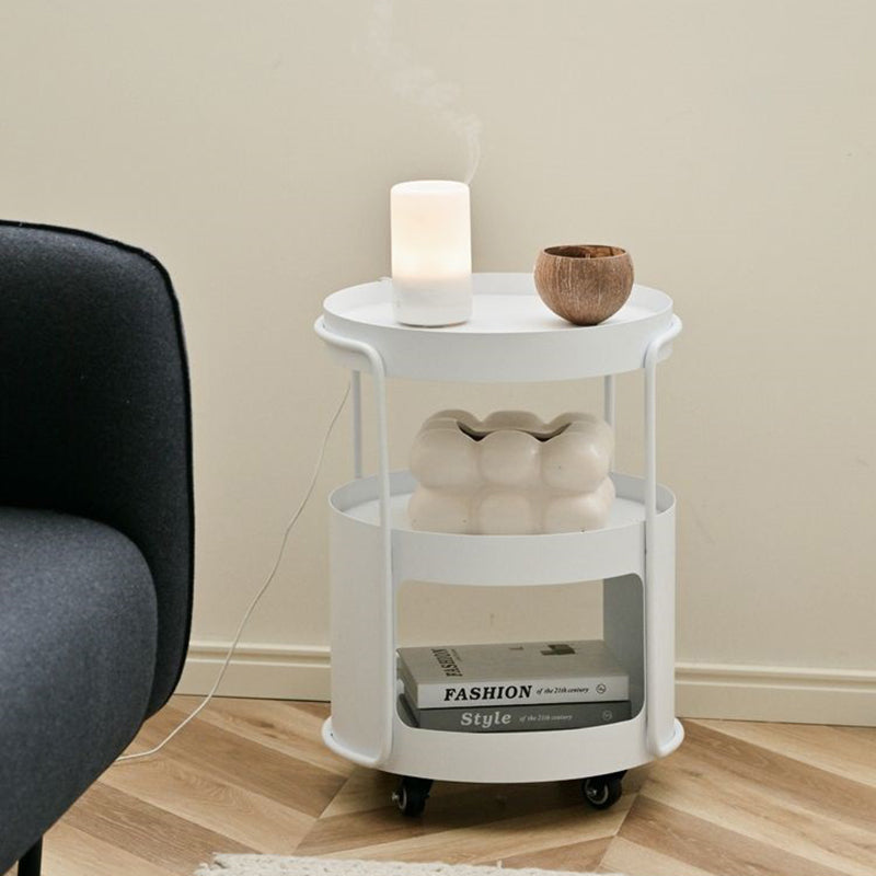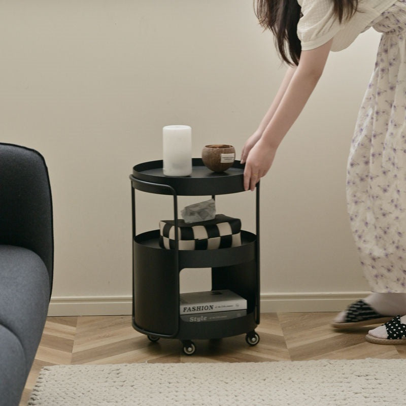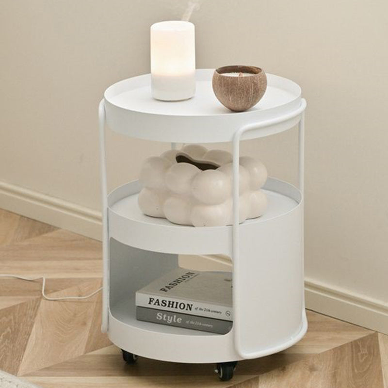 Modern Minimalist Round Carbon Steel Movable Side Table 3-Tier For Living Room