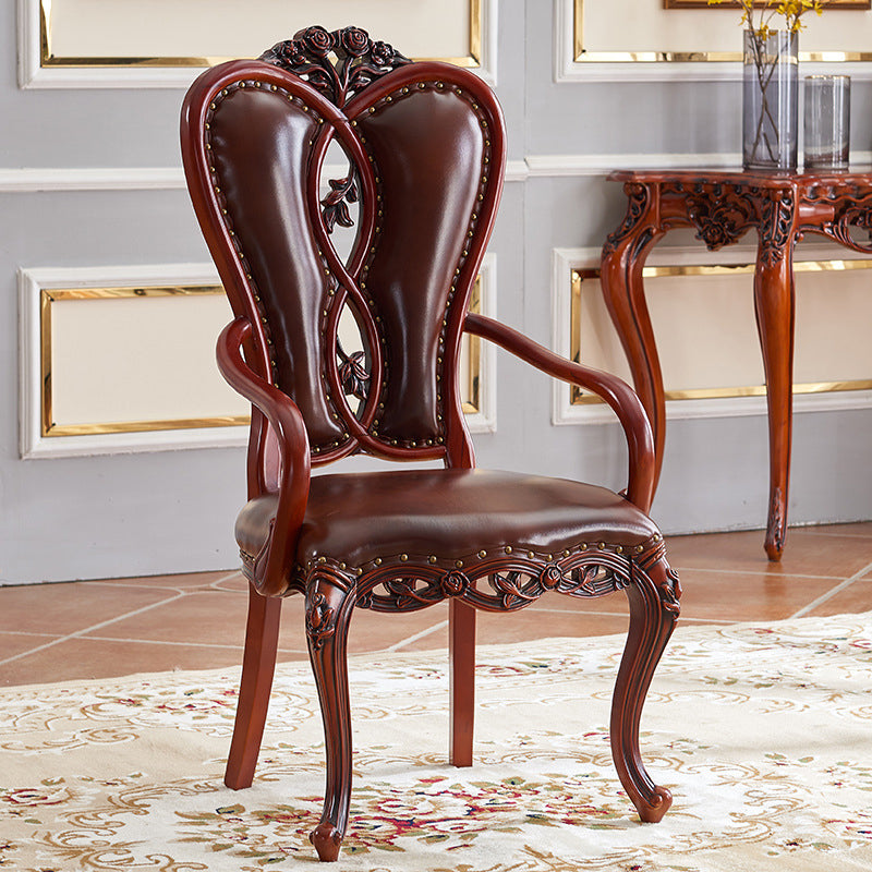 Designed for the modern home, this luxury dining chair seamlessly blends form and function. It features an ergonomic backrest and integrated armrests, all wrapped in premium distressed microfiber leather. Supported by a solid rubberwood frame and cushioned with high-resilience foam, it offers a refined aesthetic without compromising on long-lasting comfort.