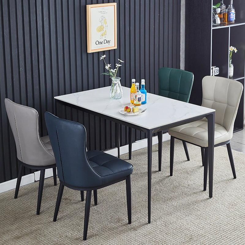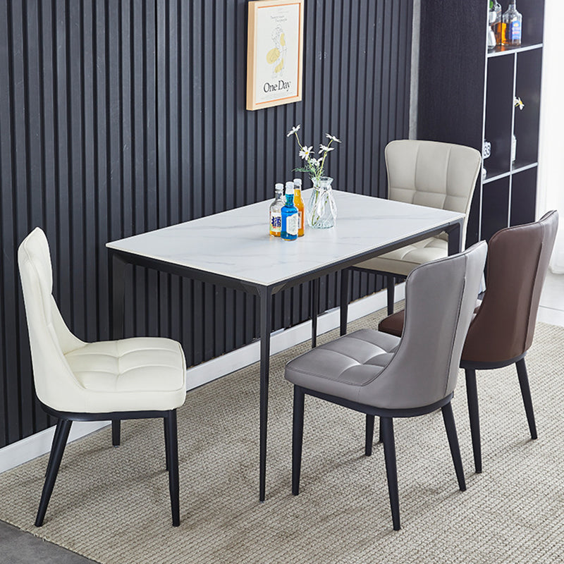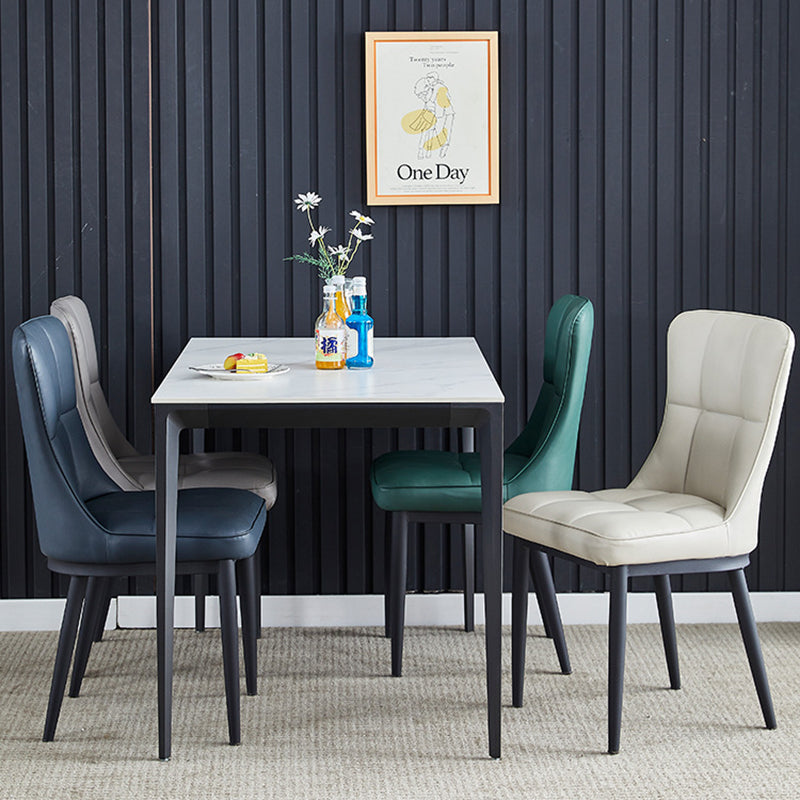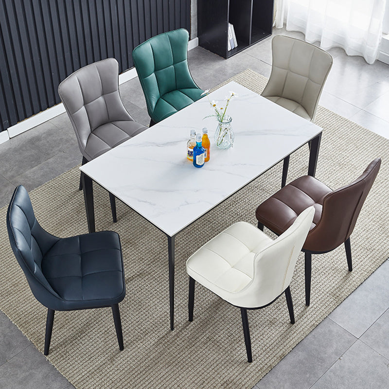 Contemporary Luxury Rectangular PU Leather Carbon Steel Dining Chair Backrest Armless For Dining Room & Kitchen