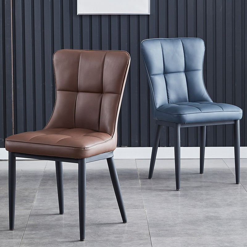 This contemporary luxury dining chair strikes the perfect balance between industrial strength and refined comfort. Its padded PU leather seat and ergonomic backrest are layered with high-resilience foam, ensuring a plush seating experience that withstands daily use. Anchored by a sleek carbon steel frame, the design features a sophisticated color palette—from royal blue to coffee brown—making it a versatile centerpiece for high-end dining rooms, boutiques, or hotel lounges.