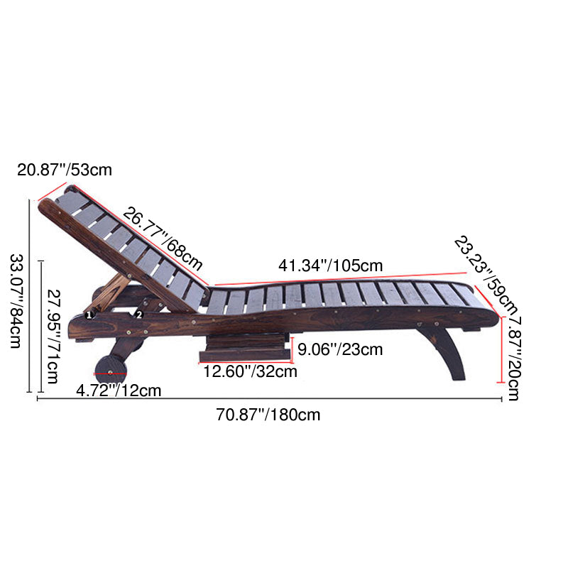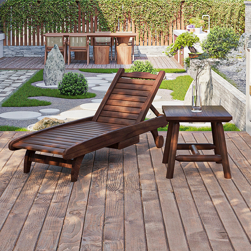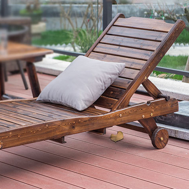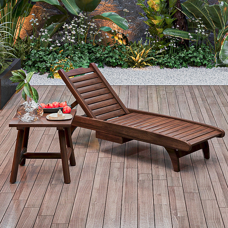 Enhance your outdoor living with our Foldable Rustic Cedar Lounge Chair. This traditional design boasts a natural wood finish and a sturdy, solid-wood construction built for enduring comfort. Maximizing convenience, it features a three-position adjustable backrest for customized relaxation and a handy side drawer to securely store small items. Mobility is simple with integrated rear wheels. Ideal for balconies, patios, and poolsides, this chair is the ultimate solution for practical, everyday outdoor lounging.