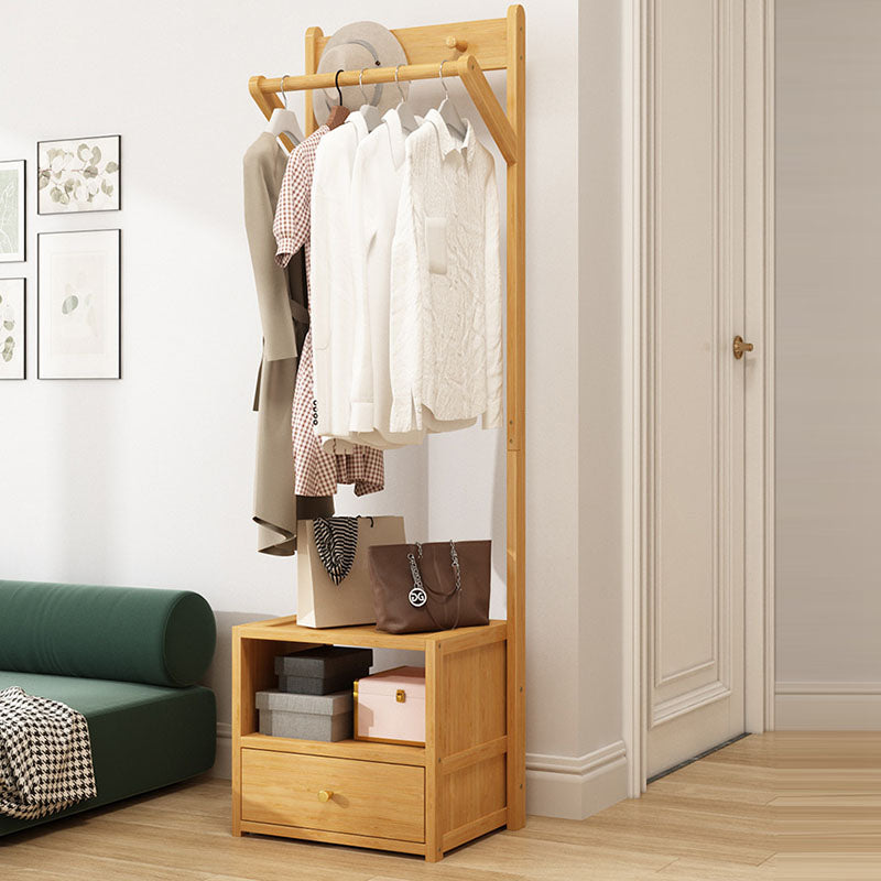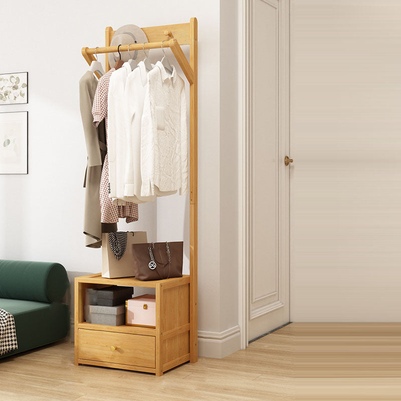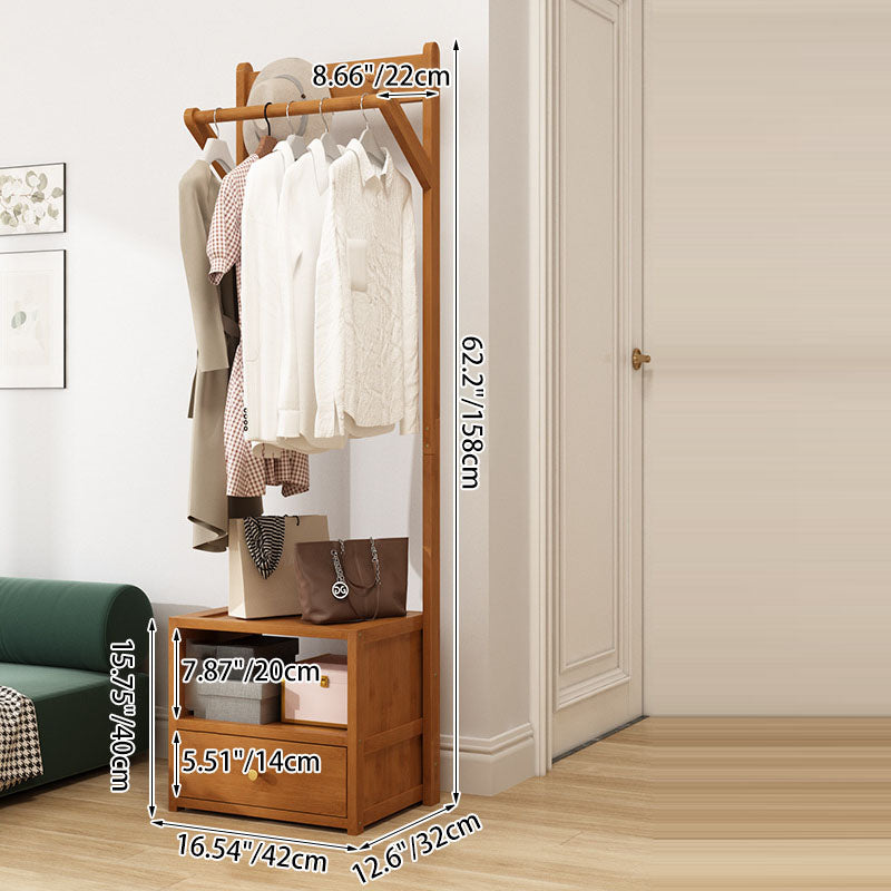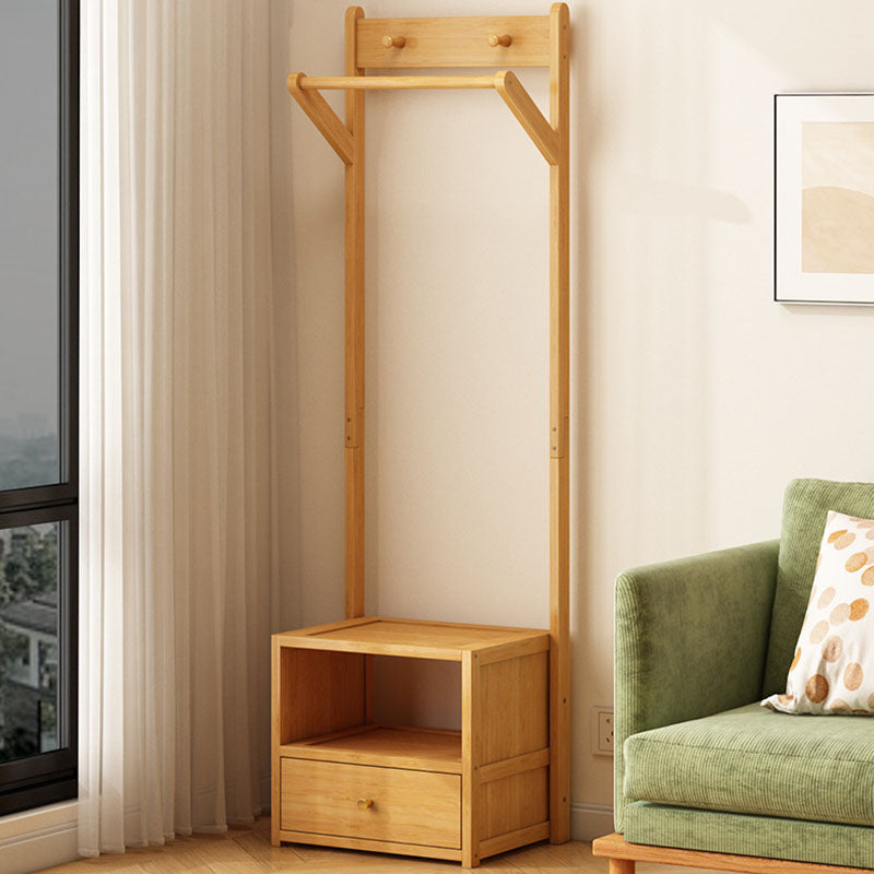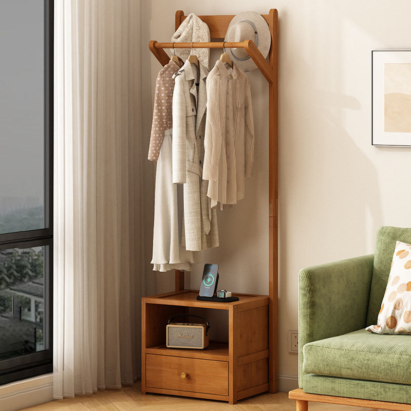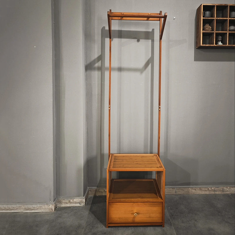 Modern Minimalist Bamboo & MDF Rectangular Hall Tree With 1-Cabinet 2-Tier Storage For Bedroom & Living Room