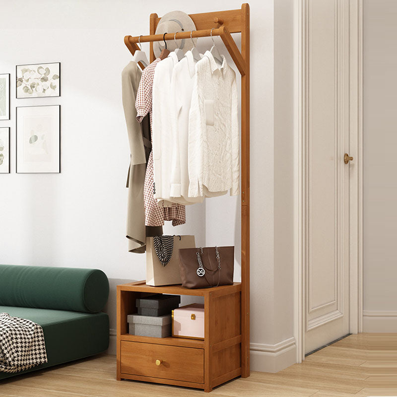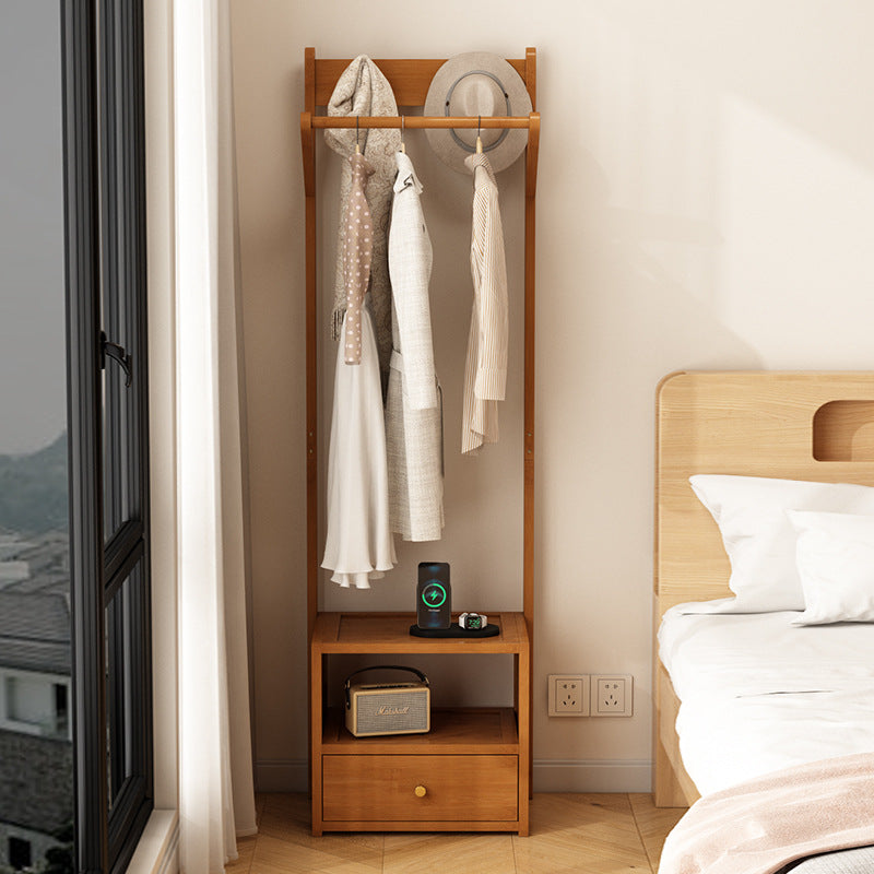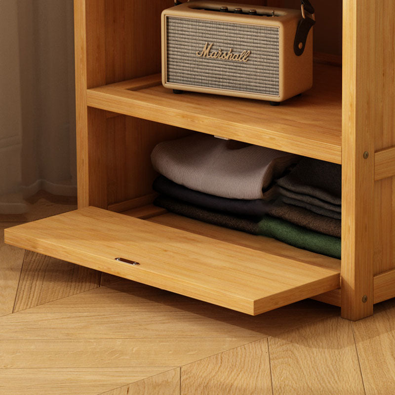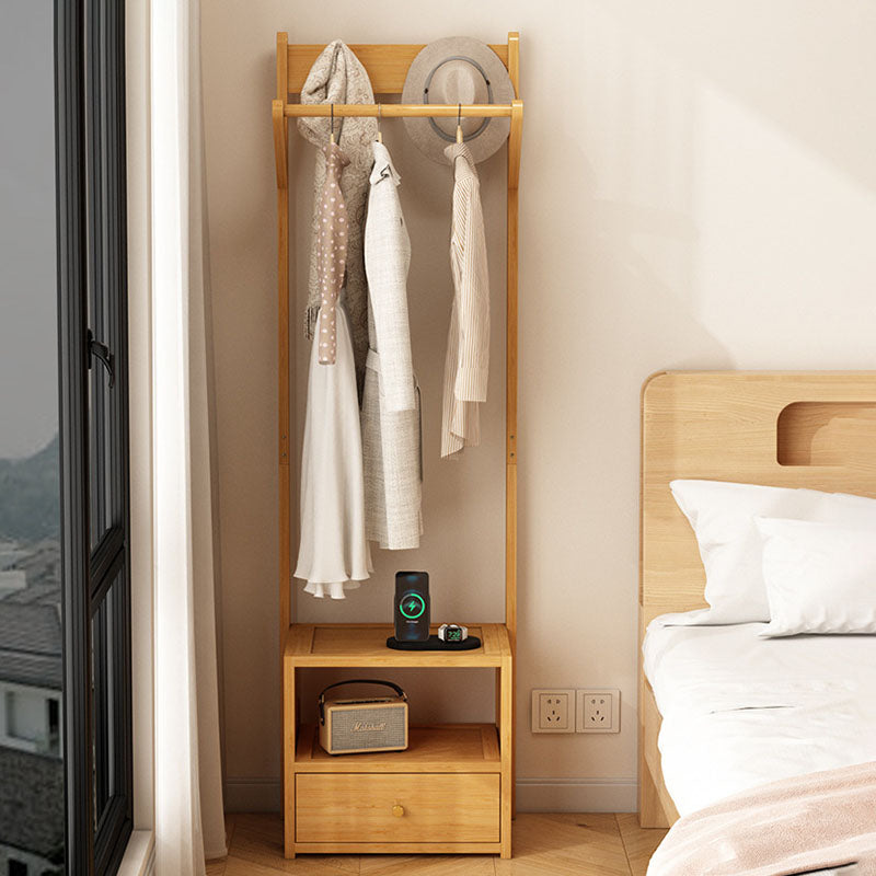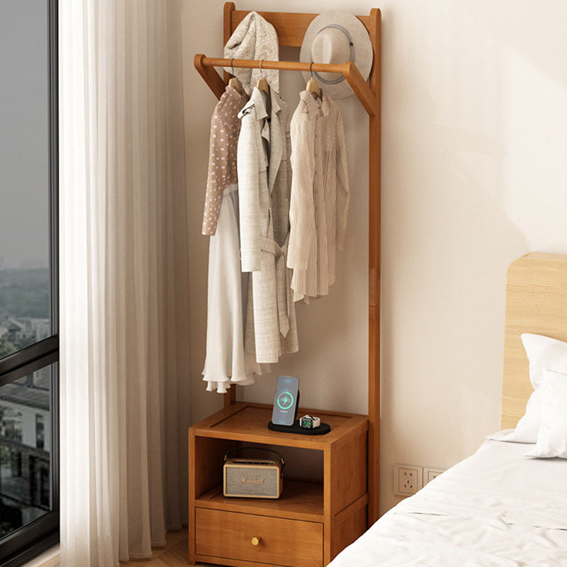 This modern clothes rack combines natural bamboo and durable MDF in a clean rectangular design, featuring a 1-cabinet, 2-tier storage system and a sturdy hanging bar. Available in natural and tea-colored finishes, it offers practical bedside organization for bedrooms while keeping clothing easily accessible.