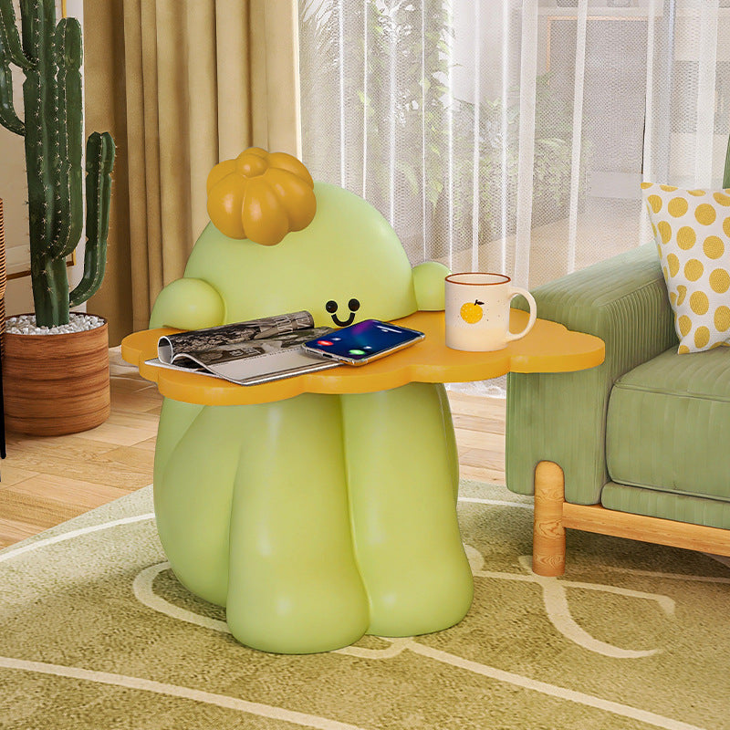 Add a playful charm to your living room or bedroom with this Contemporary Creative cactus-shaped nightstand, made of MDF and resin in a fresh green finish. It features a 1-tier tabletop, rounded edges (to prevent bumps), and a reinforced stable base—blending safety, functionality, and whimsical style.