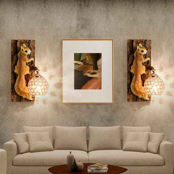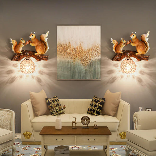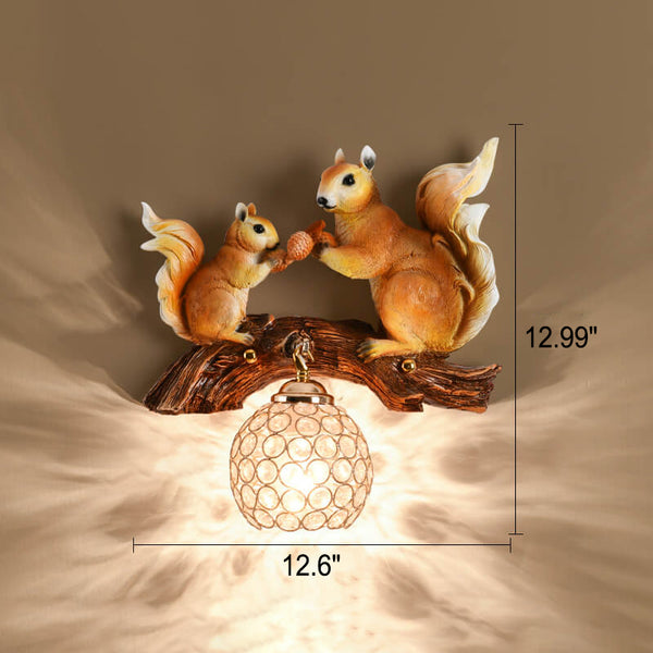Kreatives Eichhörnchen-Nuss-Harz 1-Licht Wandleuchte