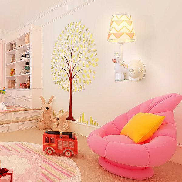 Zeitgenössische kreative Cartoon Harz Einhorn Stoff Schatten 1-Licht Kinder Wandleuchte Lampe für Schlafzimmer