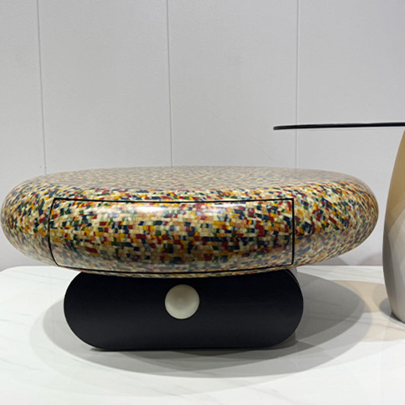 Elevating any contemporary living space, this modern luxury round coffee table showcases a vibrant, colorful finish that serves as a sophisticated focal point. Meticulously crafted from sturdy MDF, it guarantees durable construction while providing stylish functionality through its integrated built-in drawer for convenient storage. This exquisite piece combines sleek aesthetics with practical utility, making it the ideal centerpiece for homeowners seeking a blend of high-end design and organized living.