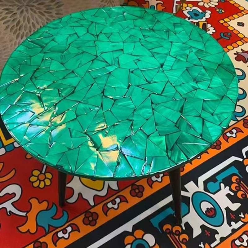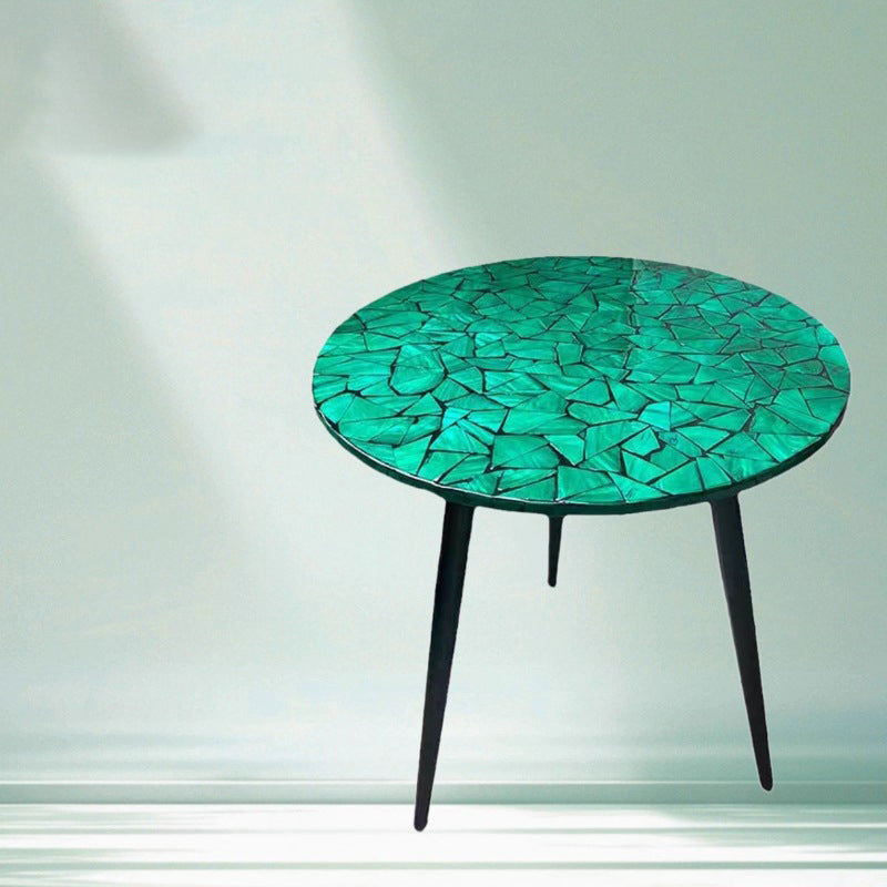 Elevate your living space with this striking green round side table, where the organic beauty of natural shell meets the durability of high-quality resin. Defined by a sleek minimalist silhouette, this versatile piece offers both lasting stability and a vibrant aesthetic for contemporary interiors. Whether utilized as a sophisticated tea table or a bold accent piece, its unique texture and modern design create an unforgettable focal point that perfectly balances form and function.