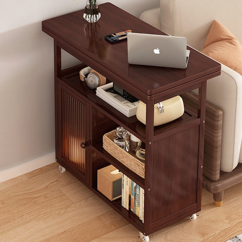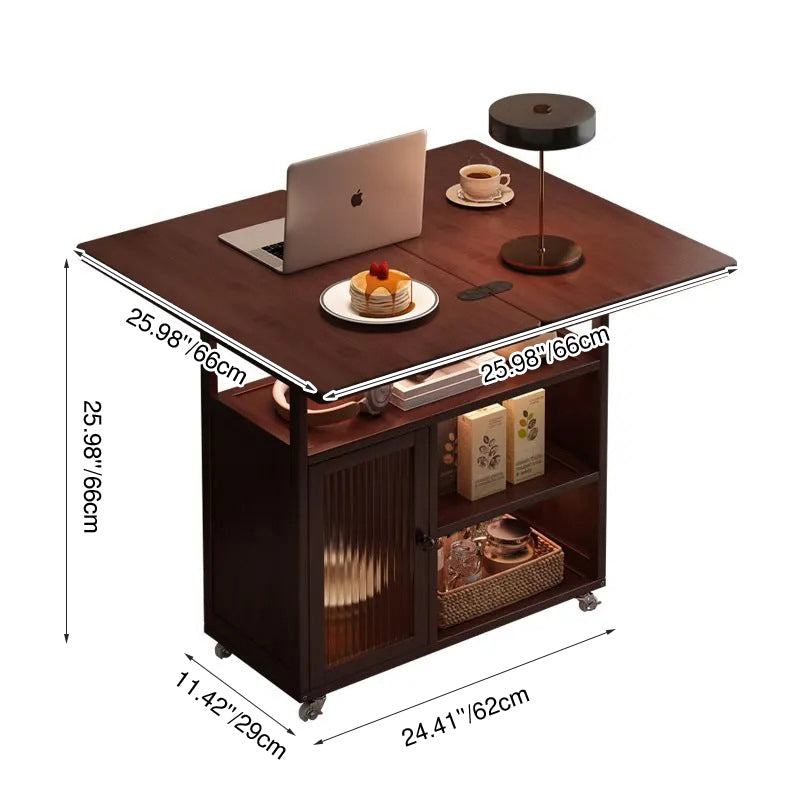 Perfectly designed for small living spaces, this modern minimalist rectangular side table maximizes convenience and storage. It features a sturdy construction of bamboo and glass with a rich walnut finish, offering a blend of durability and elegance. Equipped with four functional tiers, a convenient built-in cabinet, and smooth-rolling wheels, it provides stable, flexible storage ideal for living room use, casual dining, or versatile everyday organization.