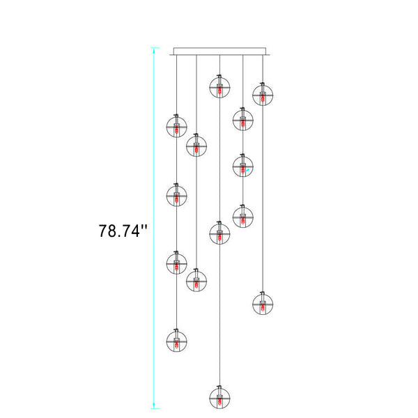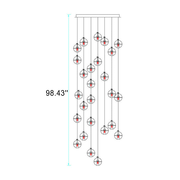 Moderne Luxus-Treppe Kristallkugel Schirm LED Loft Kronleuchter