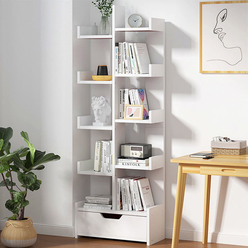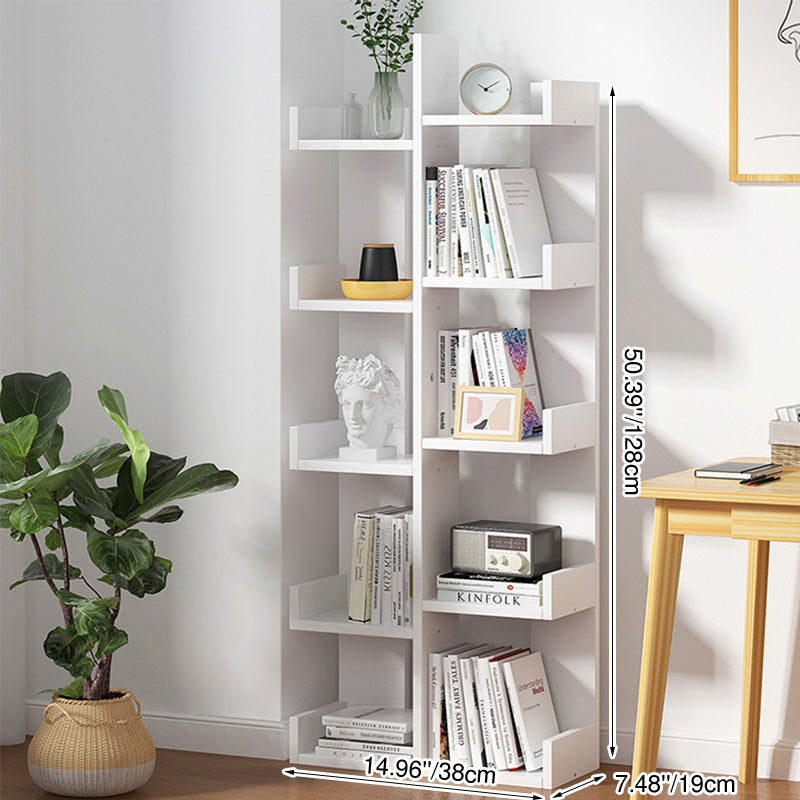 This modern minimalist storage shelf is made from durable engineered wood with a clean rectangular, right-angle design that fits neatly against walls. Featuring a stable, wobble-resistant structure and 10 spacious tiers, it’s available in white, natural wood, or oak finish, offering space-saving organization for books and everyday items in the living room.