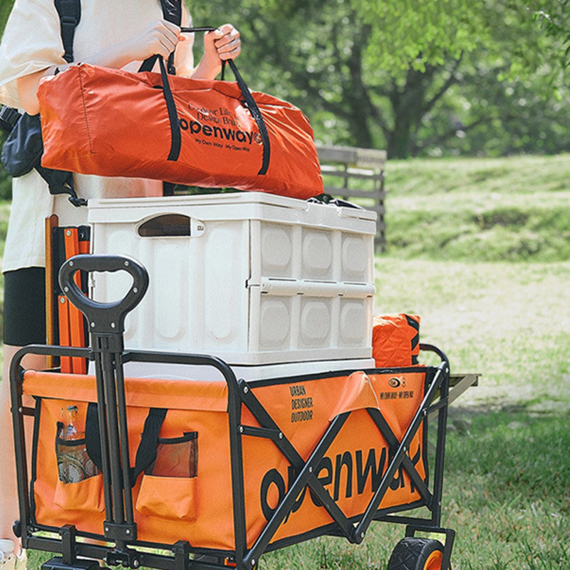 Take the heavy lifting out of your next excursion with our heavy-duty foldable camping wagon, the ultimate "all-terrain" companion for the modern outdoor enthusiast. Engineered with a rugged carbon steel frame, this utility cart provides a rock-solid foundation that effortlessly handles everything from bulky camping gear to heavy coolers. The body is wrapped in high-density 600D Oxford fabric, prized for its tear resistance and weather-proof durability, ensuring your essentials stay secure regardless of the trail conditions. Available in high-visibility Vibrant Orange and Forest Green, its sleek yet industrial design makes it a standout piece of equipment for North American campsites, beach days, and tailgating events.