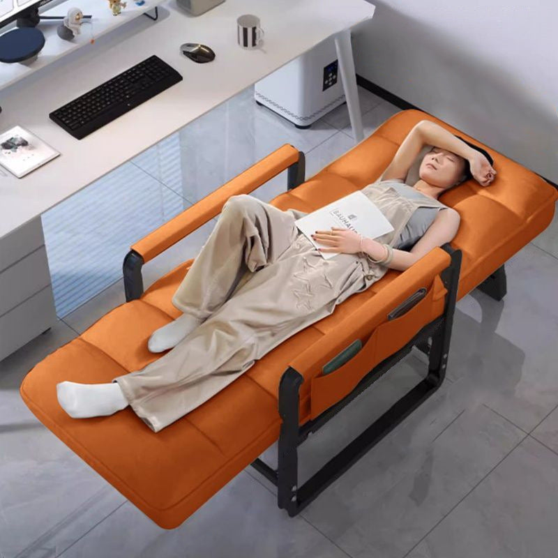 Elevate your home with this modern sofa chair, where industrial durability meets refined luxury. Built on a durable carbon steel frame, it is upholstered in breathable tech fabric and filled with high-resilience sponge padding for lasting shape and comfort. The adjustable backrest and comfortable armrests allow for a seamless transition between sitting and reclining. Available in a palette of gray, orange, off-white, and blue, this chair offers a stable weight capacity and foldable convenience, making it a versatile centerpiece for living rooms, home offices, or a restorative midday rest.