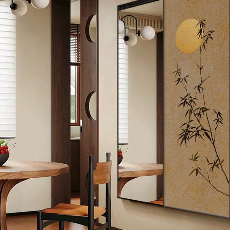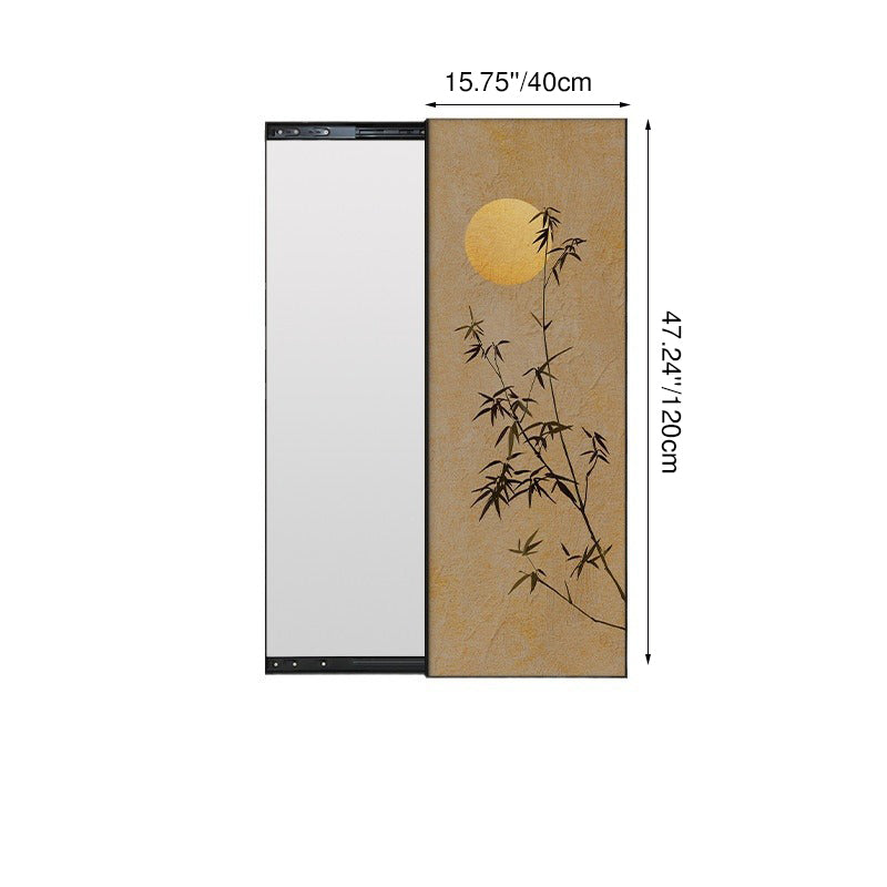 Introduce tranquility and clever functionality into your home with this exquisite traditional Chinese-style full-length mirror. The piece features a secure, elegant rectangular aluminum frame that houses a high-definition, explosion-proof float-glass surface, guaranteeing a clear and safe reflection. The true artistic feature is the sliding design, which seamlessly conceals the full-length mirror behind a serene, beautifully executed bamboo-inspired painting finished in durable crystal glaze.