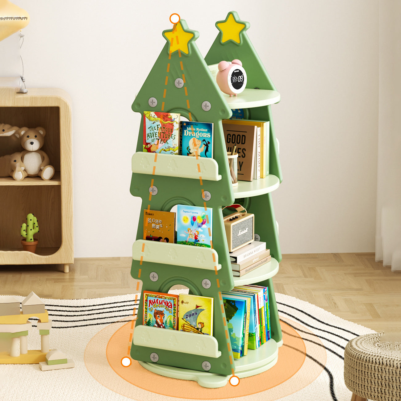 Contemporary Creative Christmas Tree-Shaped Eco-Friendly HDPE Rotatable Bookshelves 4-Tier For Home Office