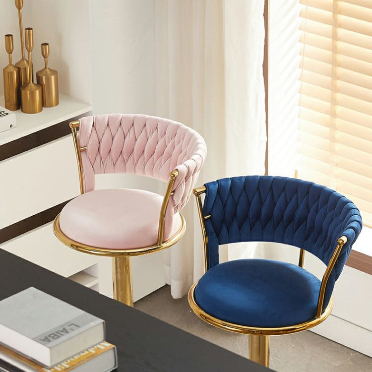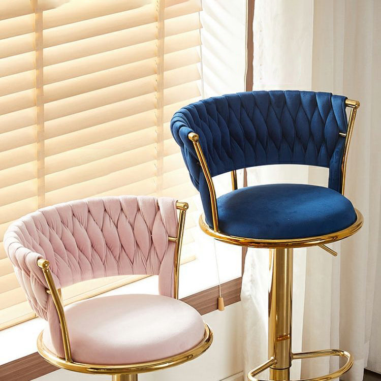Contemporary Luxury Round Iron Faux Velvet Height Adjustable Bar Stool For Kitchen