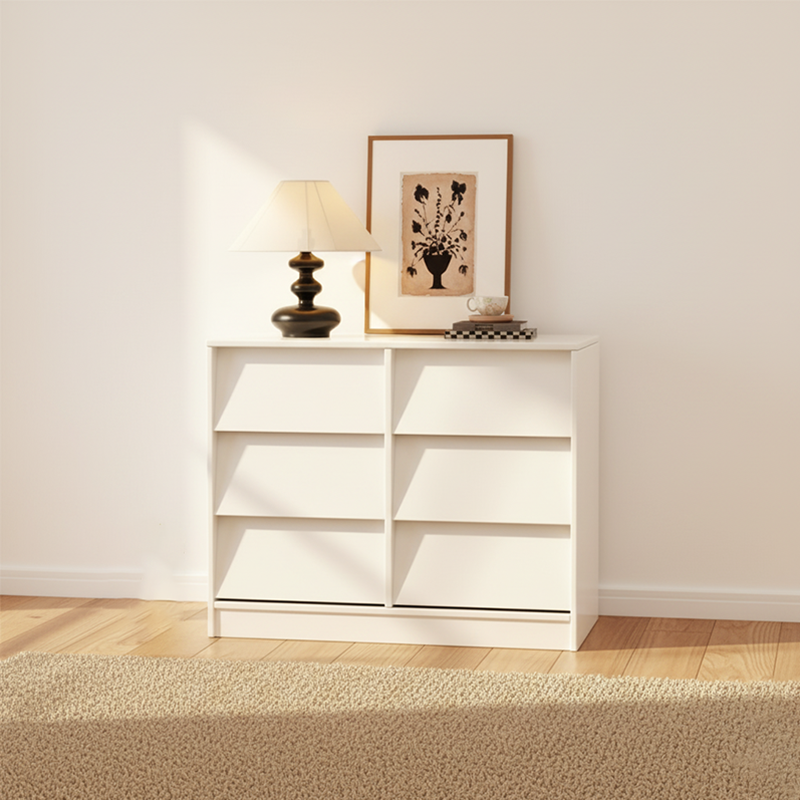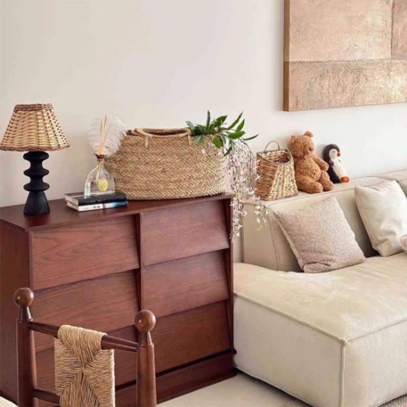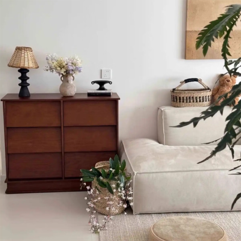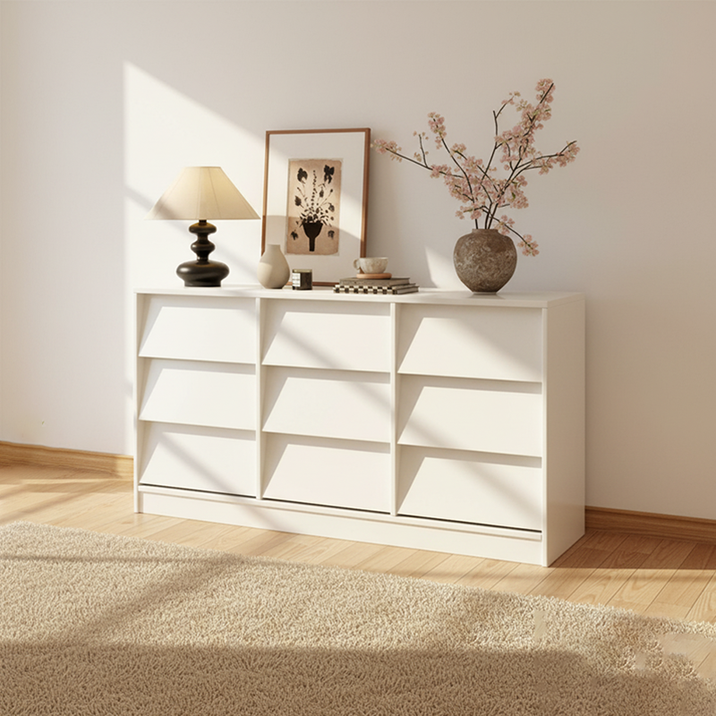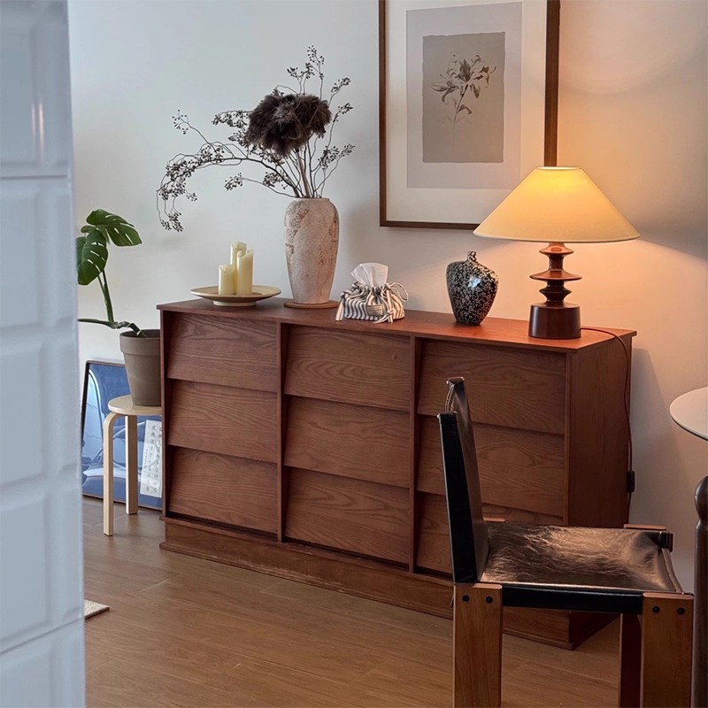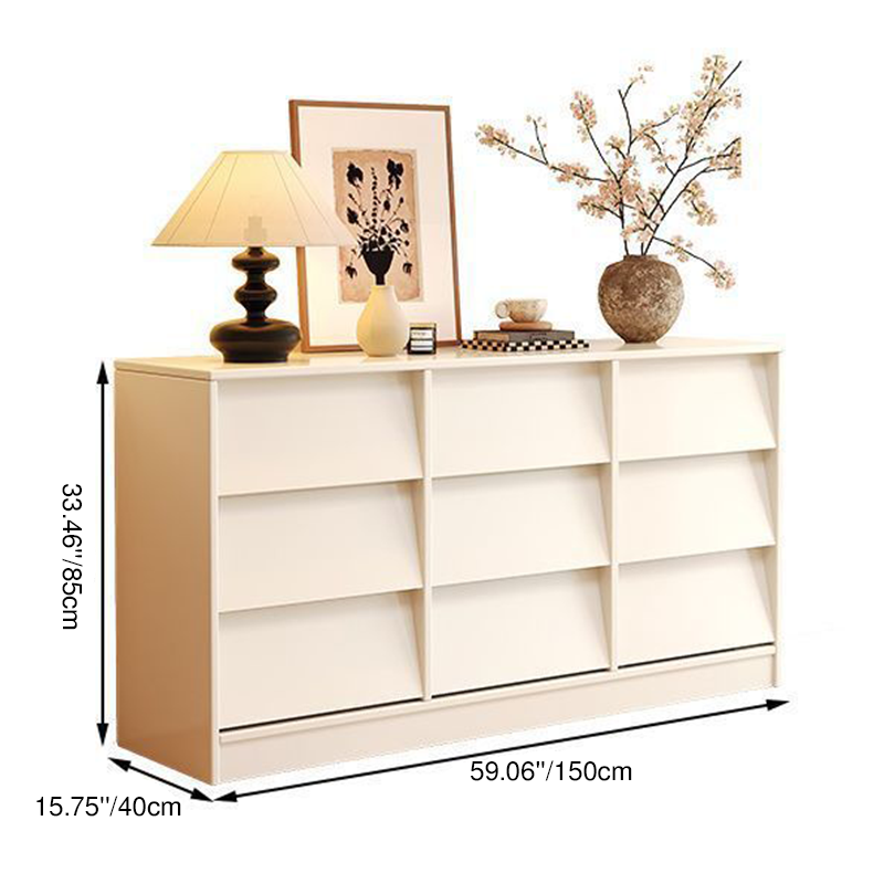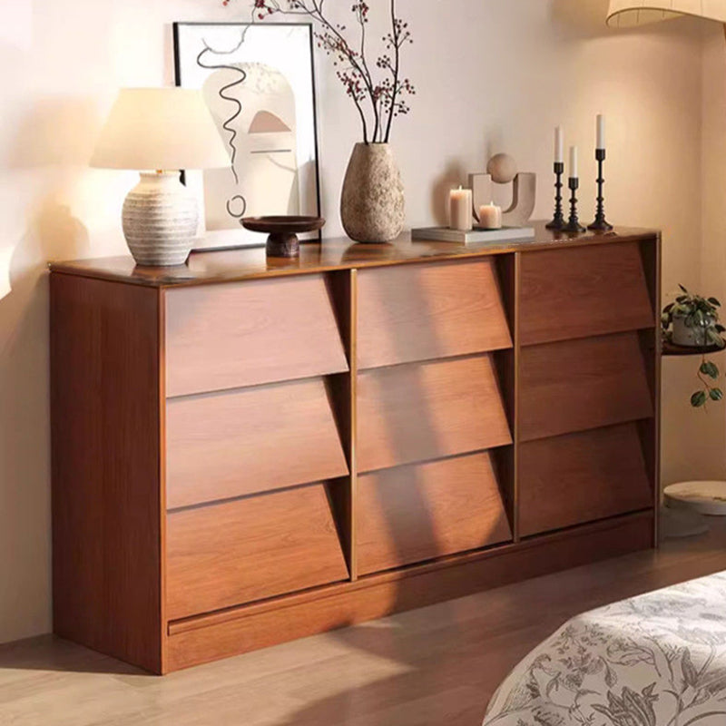 Contemporary Retro Venetian Blind Rectangular Pine Wood Carbon Steel Storage Cabinet 6/9-Drawer For Living Room & Bedroom