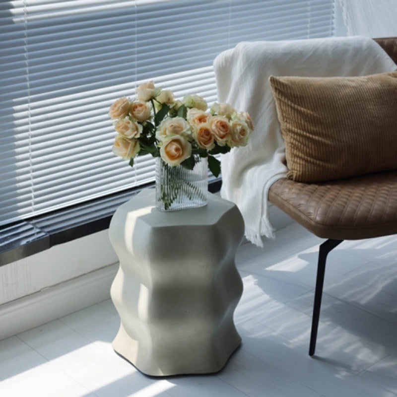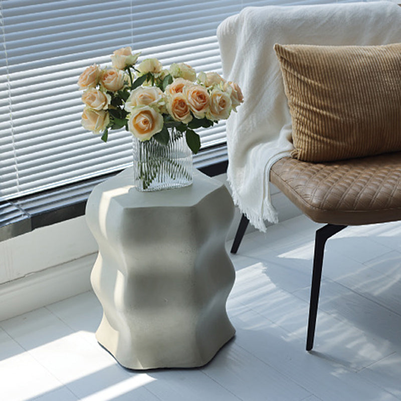 Modern Minimalist Wavy Cube Magnesium Oxide End Table For Living Room