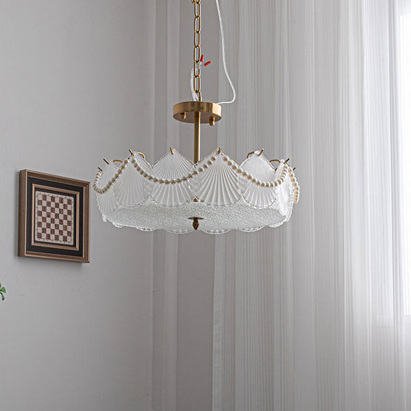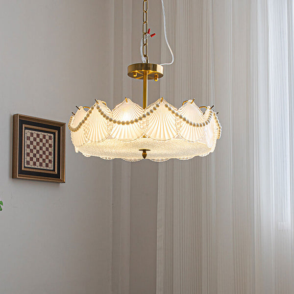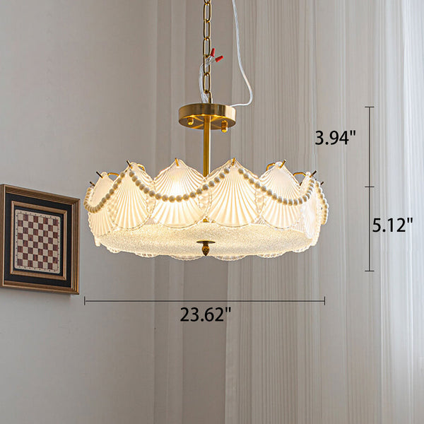 Französischer leichter Luxus Muschel Glas Perle Runde 5/6/8 Licht Kronleuchter