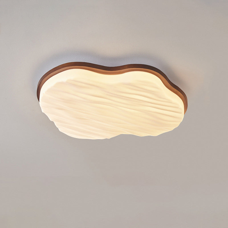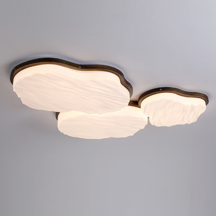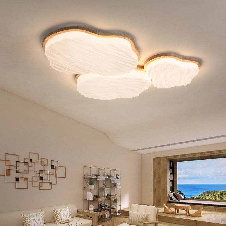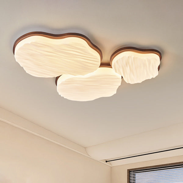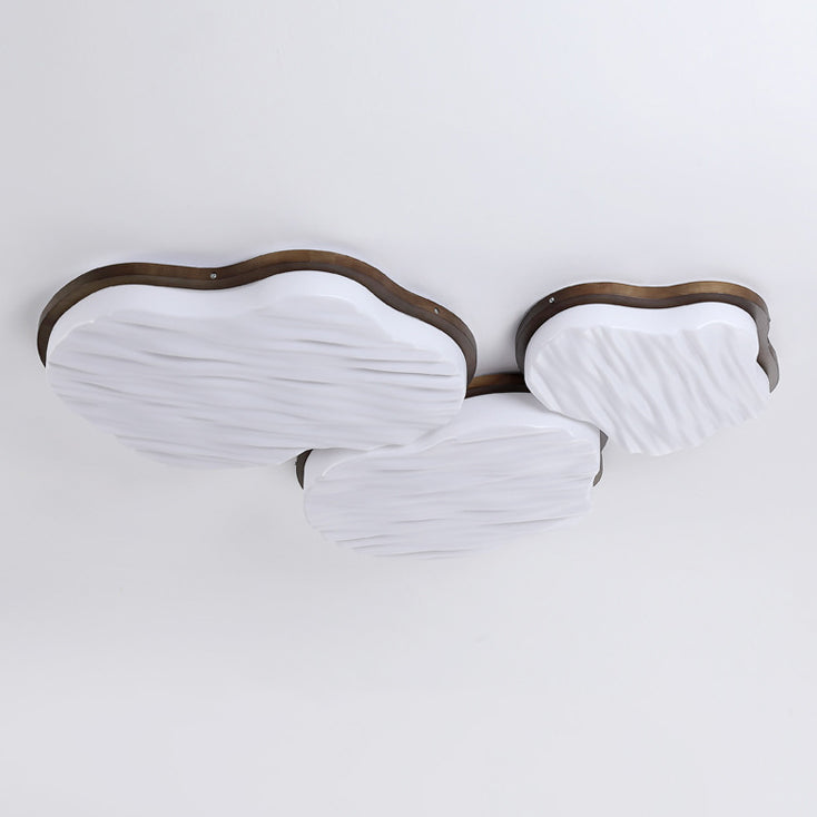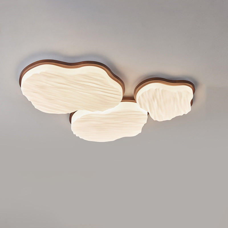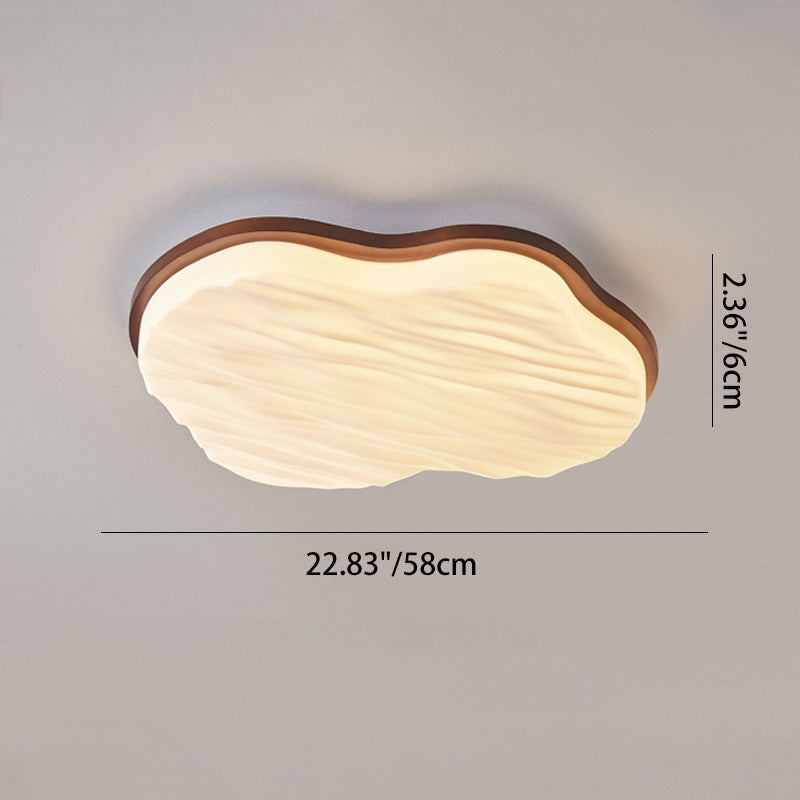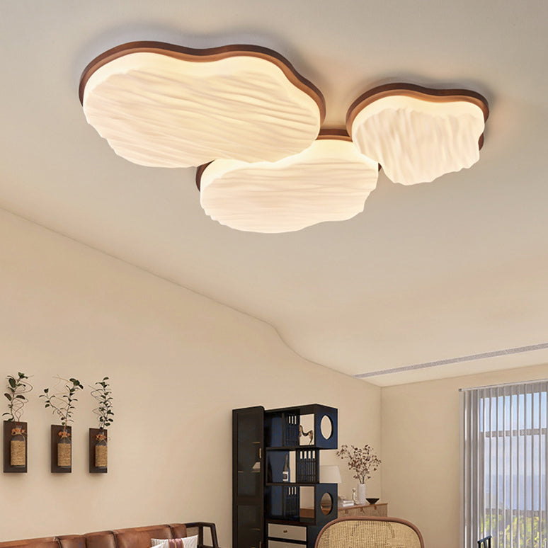 Traditional Chinese Rubberwood Acrylic Cloud Wave LED Flush Mount Ceiling Light For Living Room & Bedroom