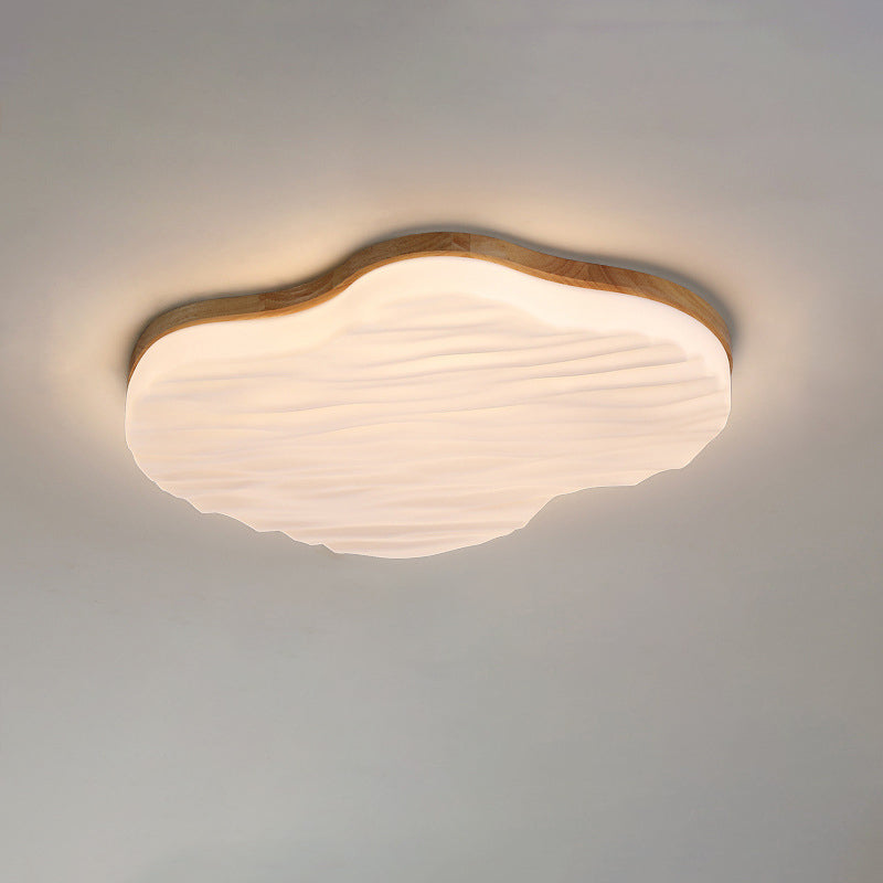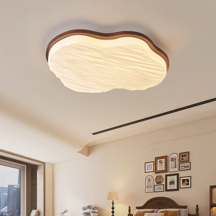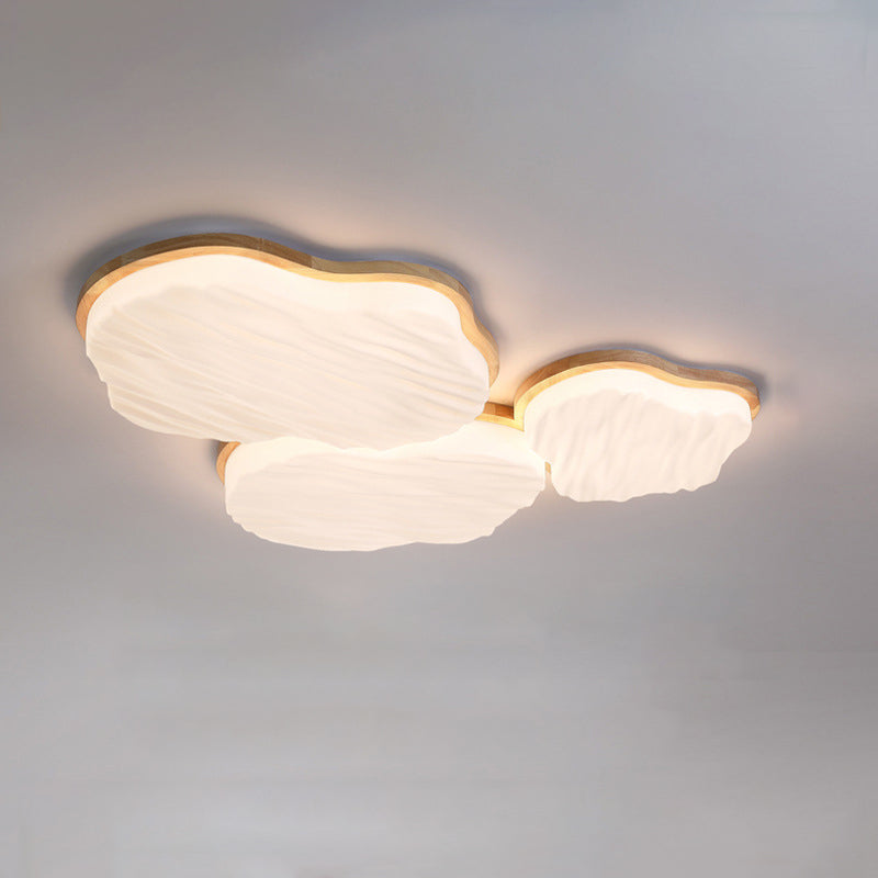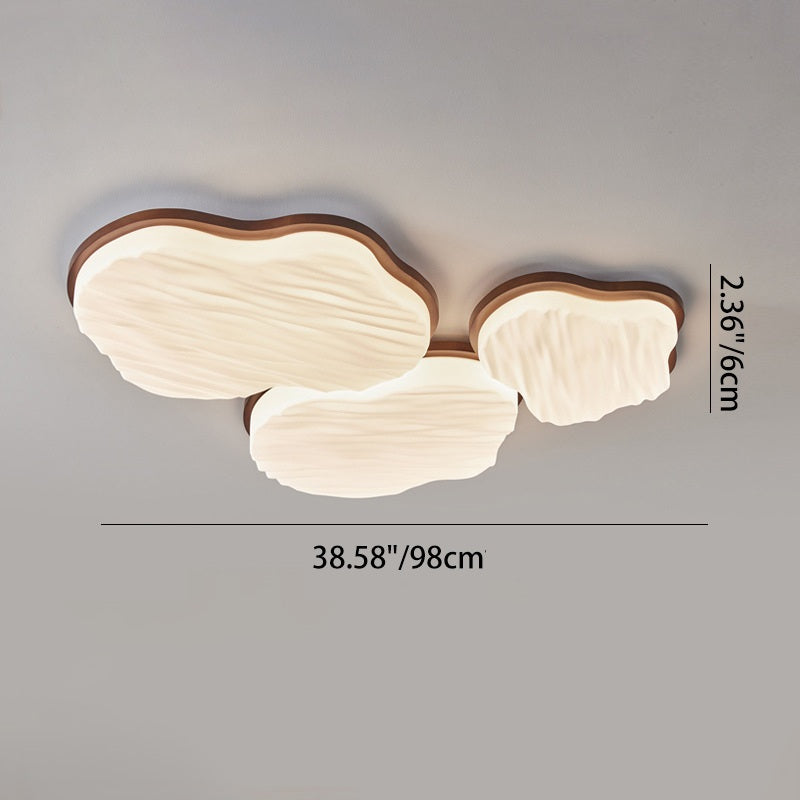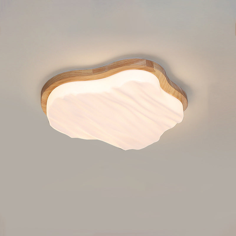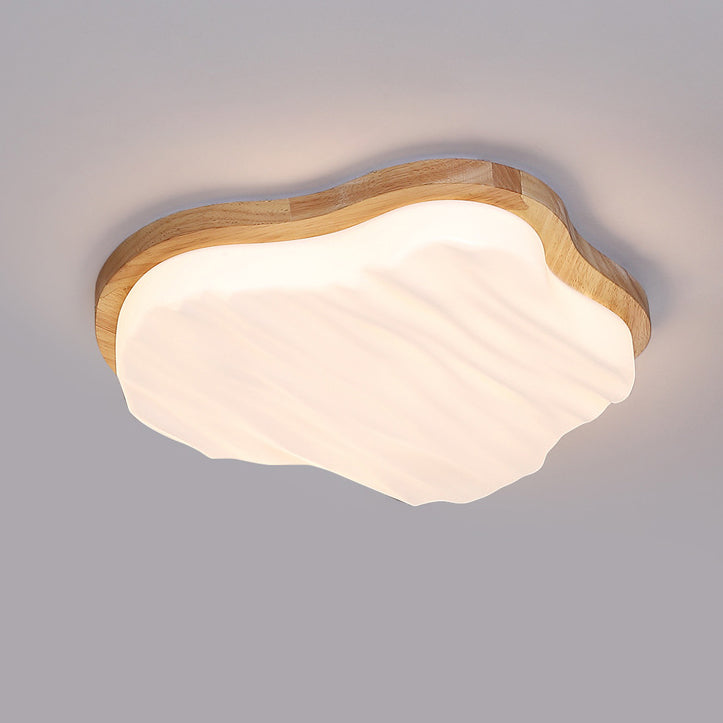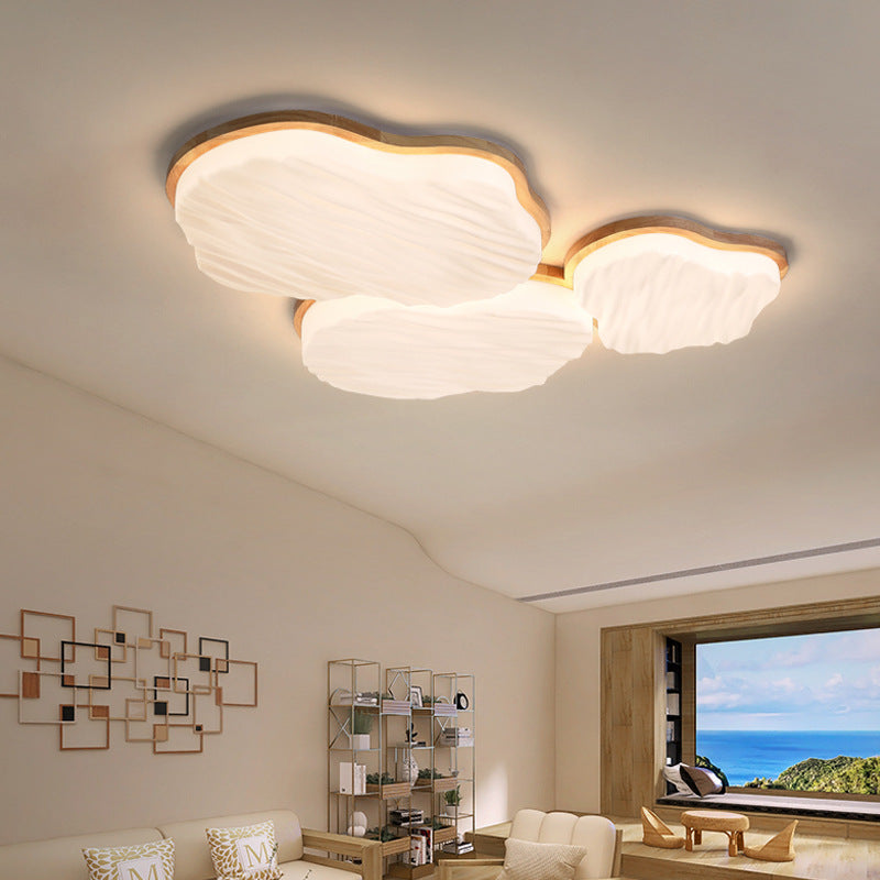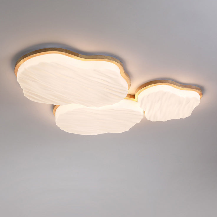 Traditional Chinese Rubberwood Acrylic Cloud Wave LED Flush Mount Ceiling Light For Living Room & Bedroom