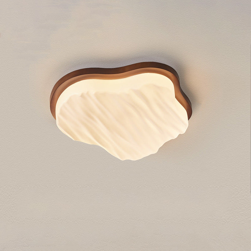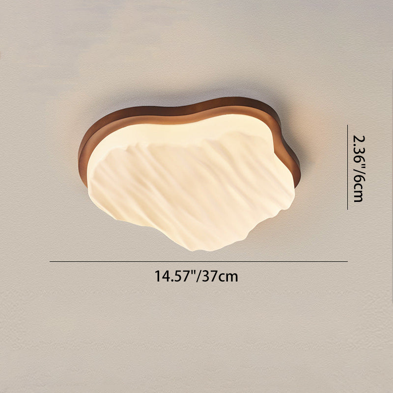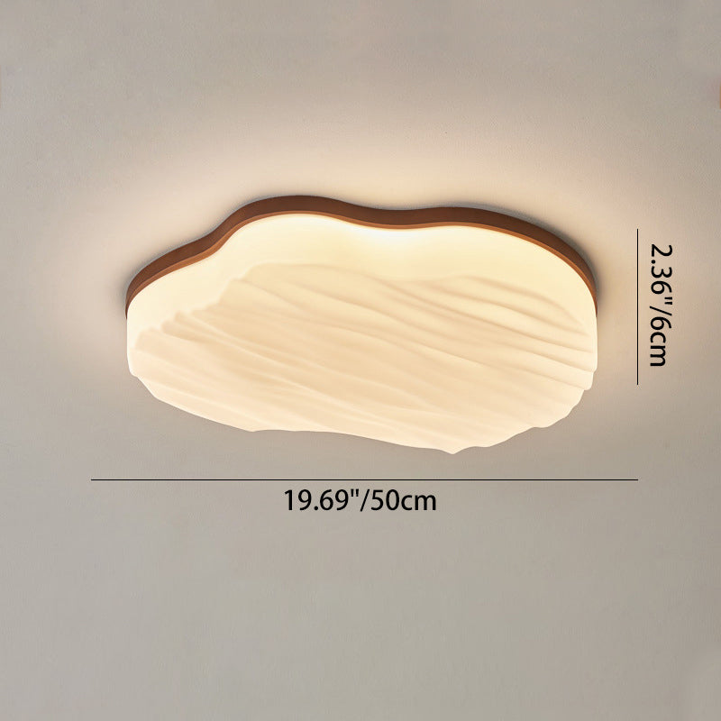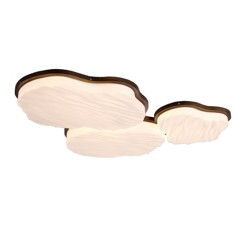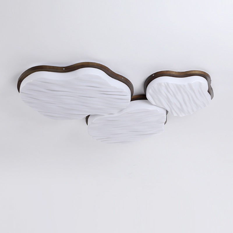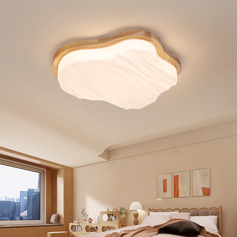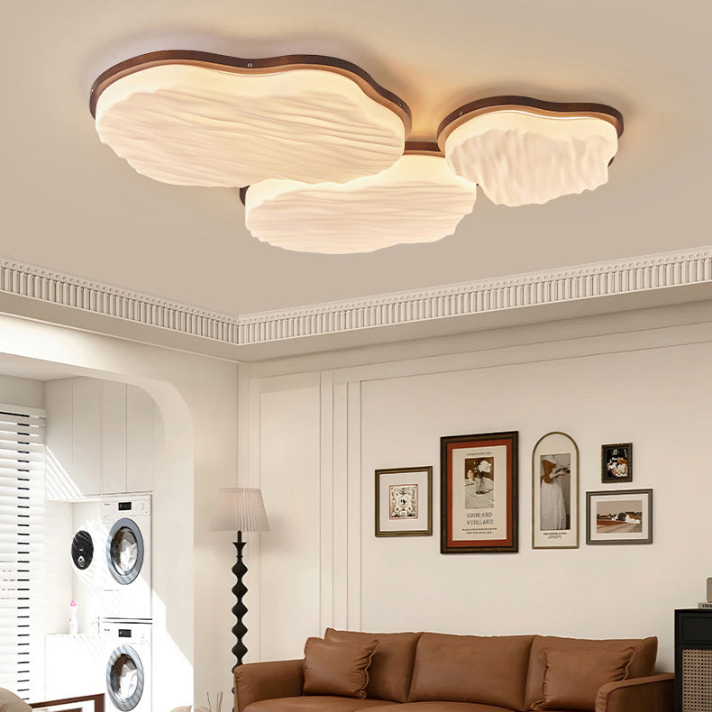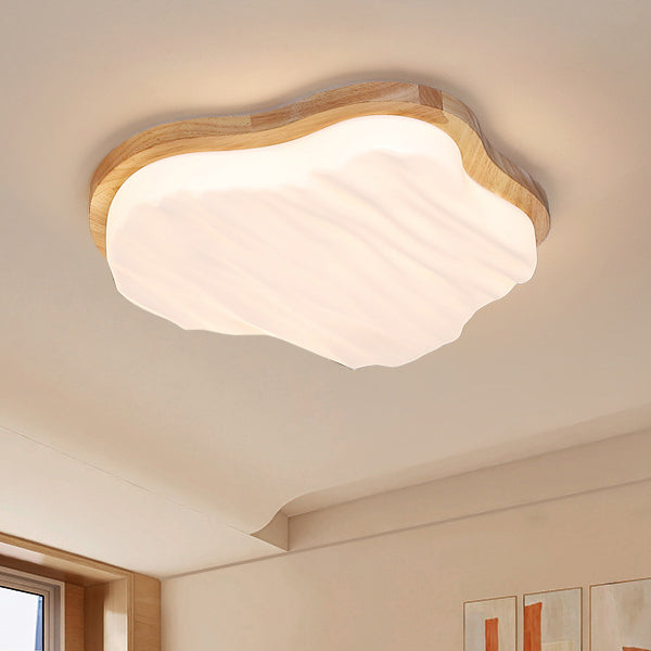 Traditional Chinese Rubberwood Acrylic Cloud Wave LED Flush Mount Ceiling Light For Living Room & Bedroom