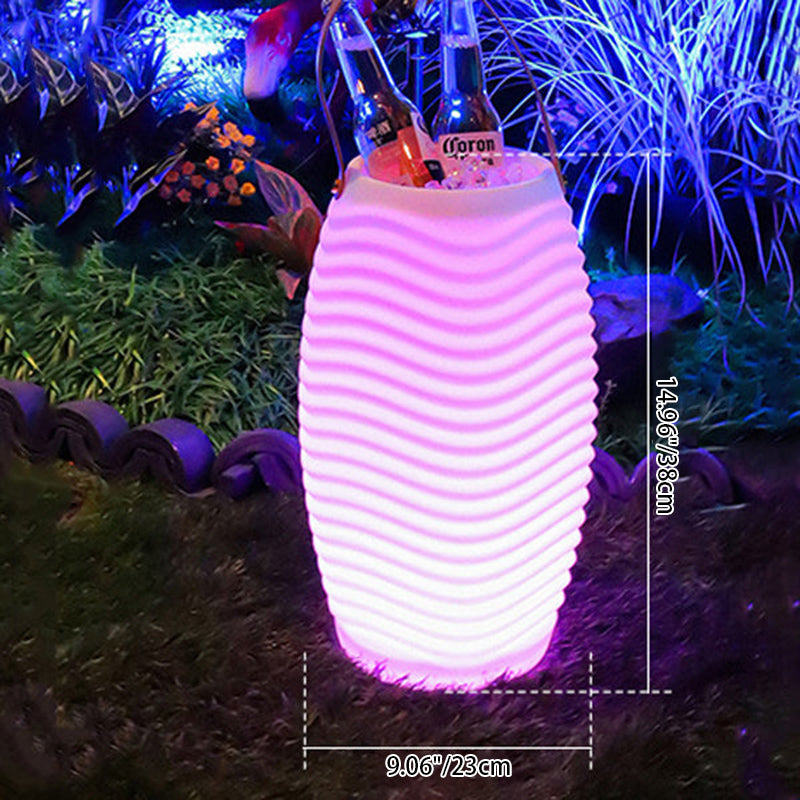 Erhöhen Sie Ihre Outdoor-Veranstaltungen mit dieser weißen, fassförmigen LED-Licht- und Lautsprecherkombination aus umweltfreundlichem PE-Material. Sie bietet 360-Grad-Beleuchtung, wasserdichtes Design und eingebauten Hochvolumen-Sound—perfekt für Partys, Bars und Veranstaltungen im Garten.