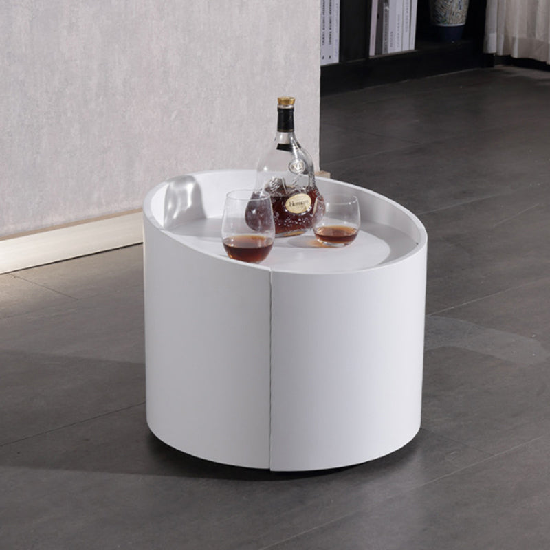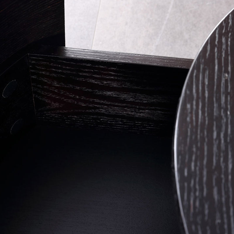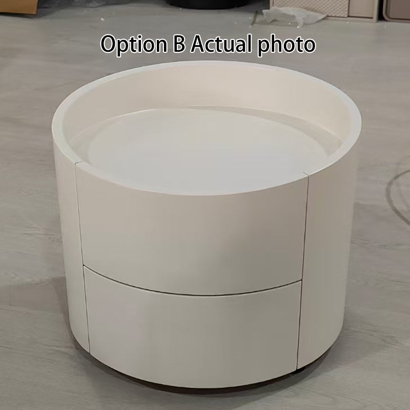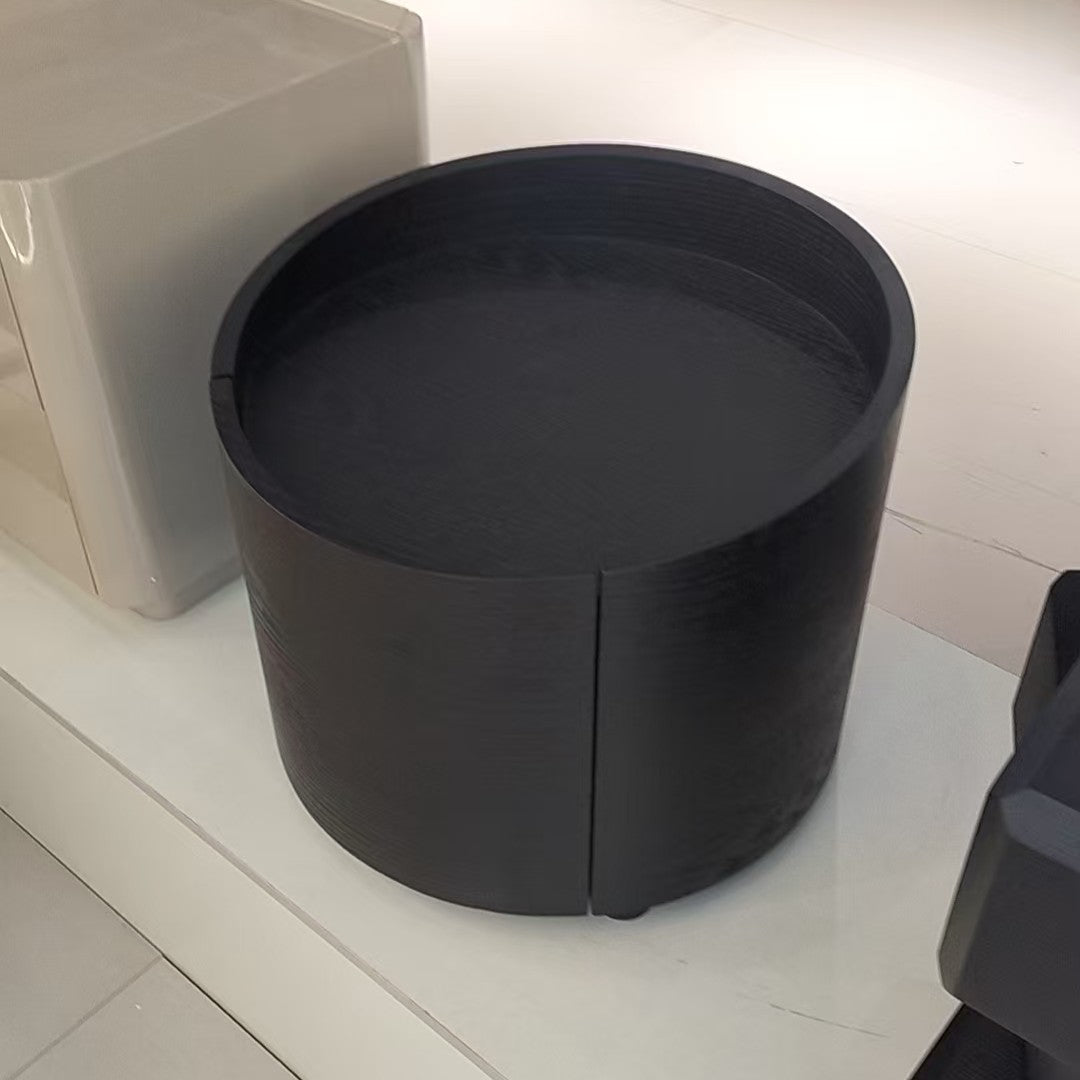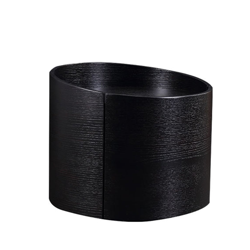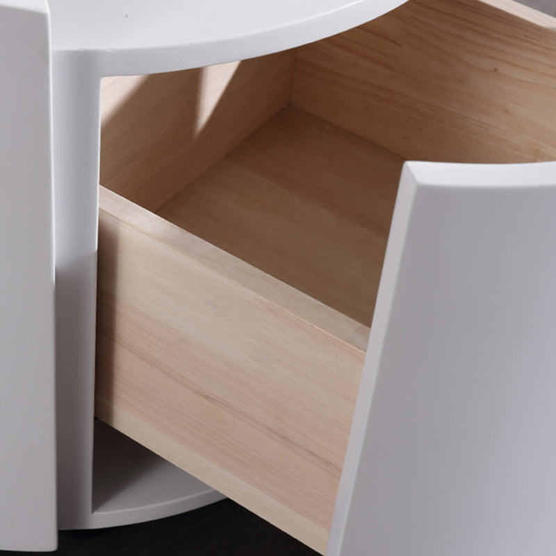 Elevate your bedroom with this minimalist round nightstand, designed with soft curves and a clean, modern silhouette to bring calm, understated elegance to any space. The fluid, curved body is expertly crafted from durable bent-plywood, ensuring long-lasting form. Available in sleek matte white or matte black, it offers refined versatility. A smooth sliding drawer neatly stores your nightly essentials, while the rounded top provides the perfect surface for a lamp, book, or diffuser, cultivating a simple yet refined bedside ritual. This piece is the ideal accent for modern, Nordic, small-space, or minimalist interiors.