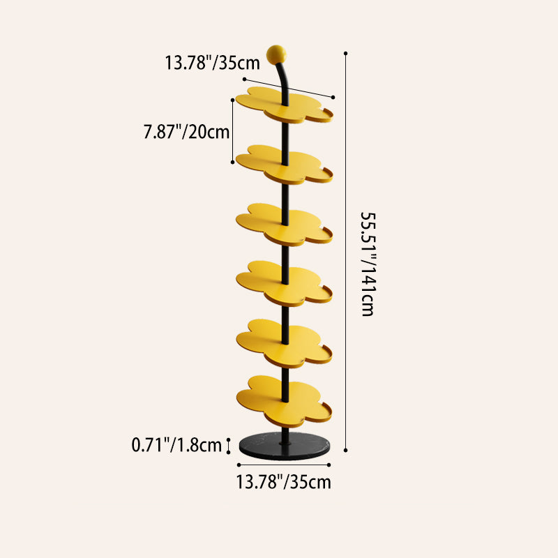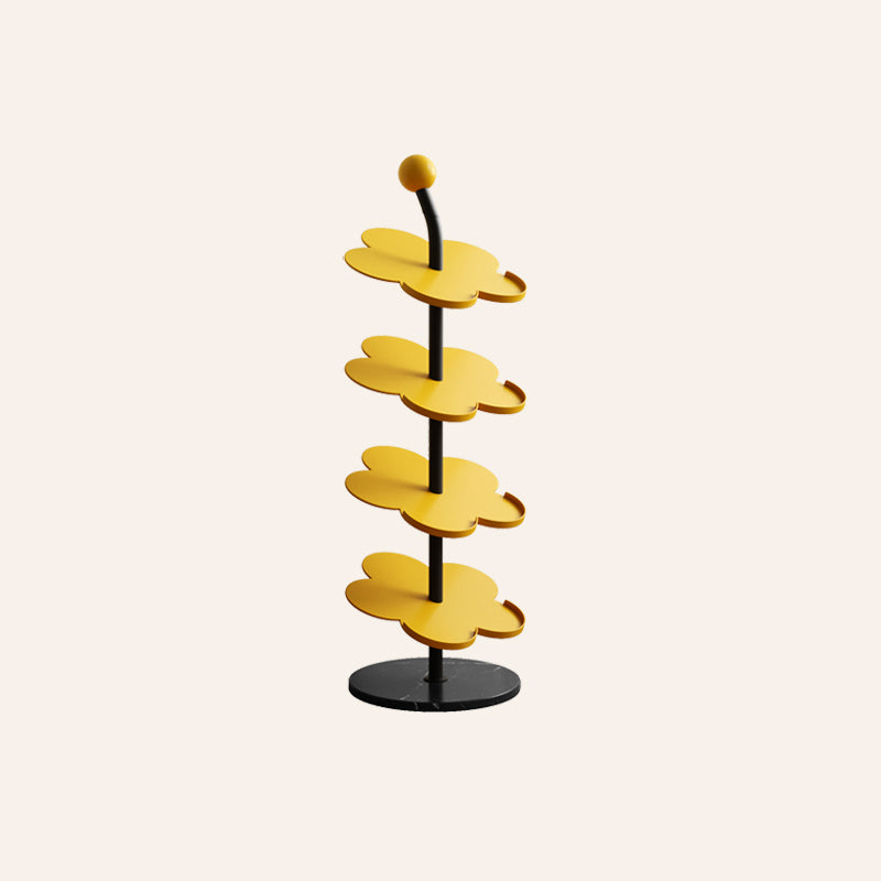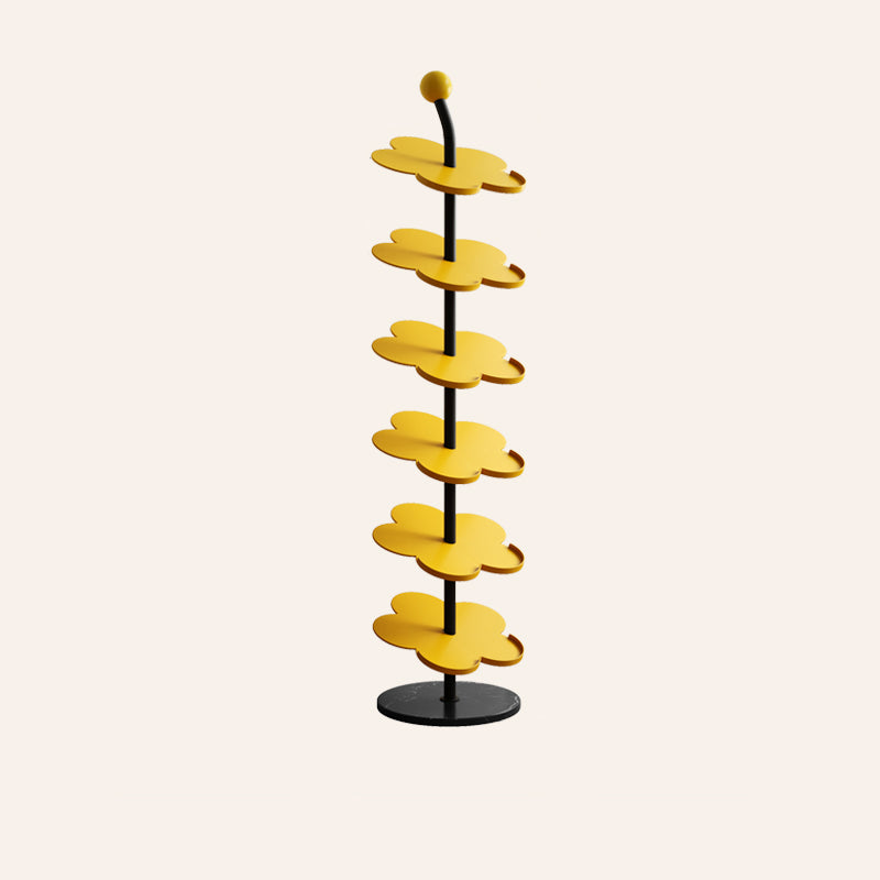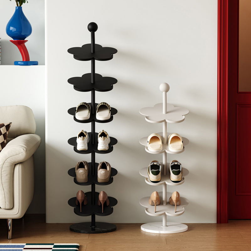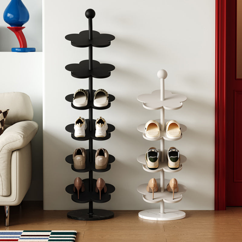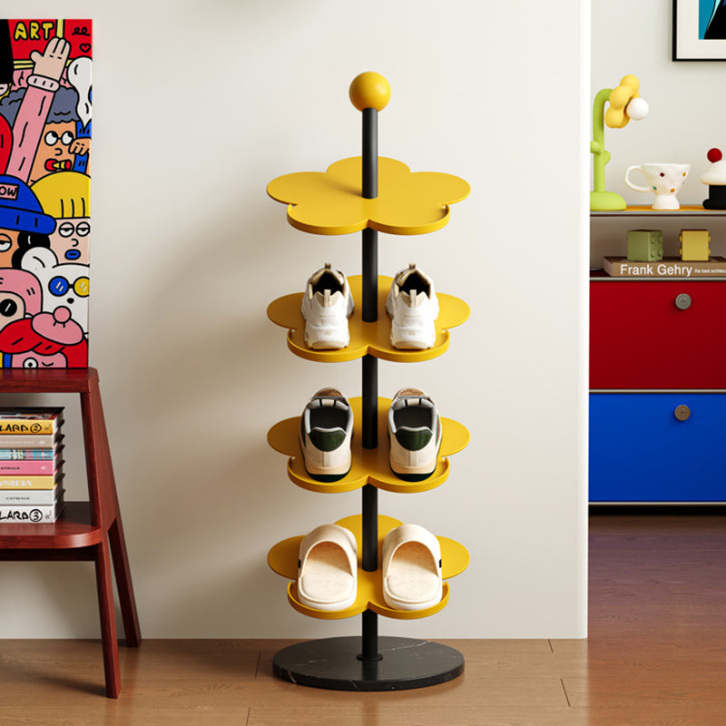 Elevate your entryway with this Art Deco carbon steel & marble flower-shaped shoe rack, available in 4/6 tiers for flexible storage. Made of heavy-duty reinforced iron (rust-resistant & corrosion-proof) with a stable marble base, it comes in cream, black, red, blue, pink and yellow to complement your living room, entryway or hallway decor.