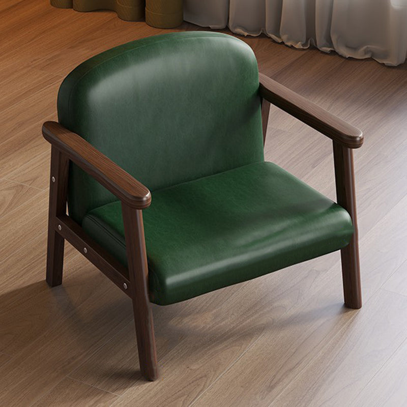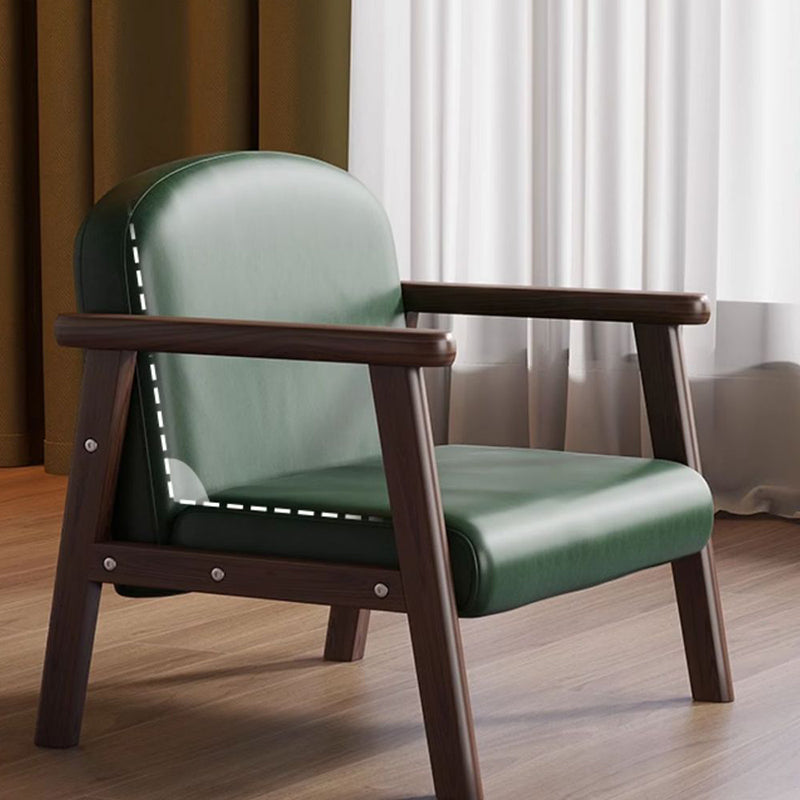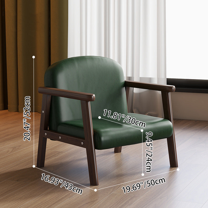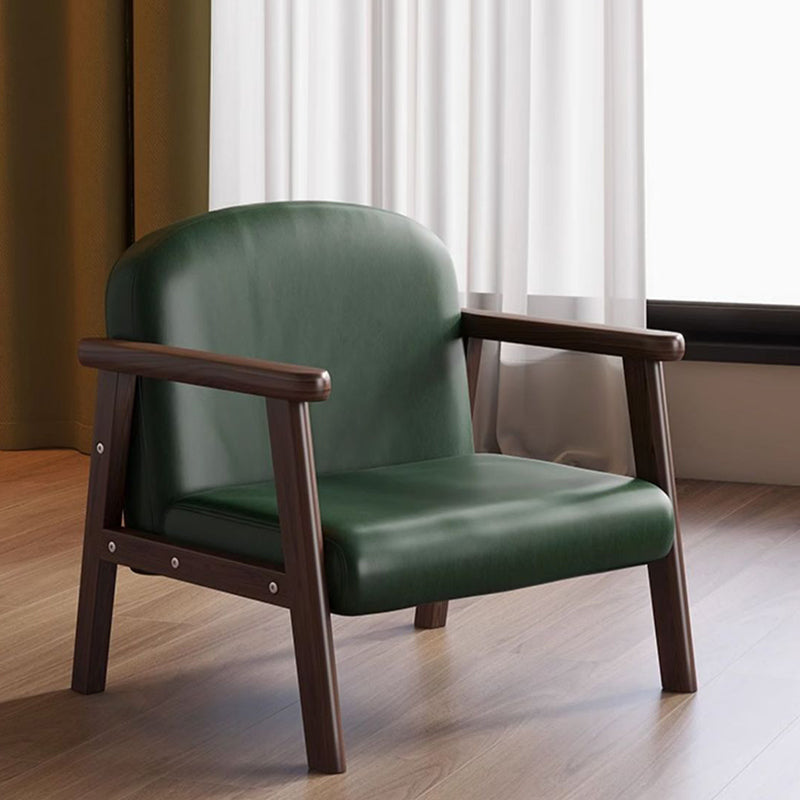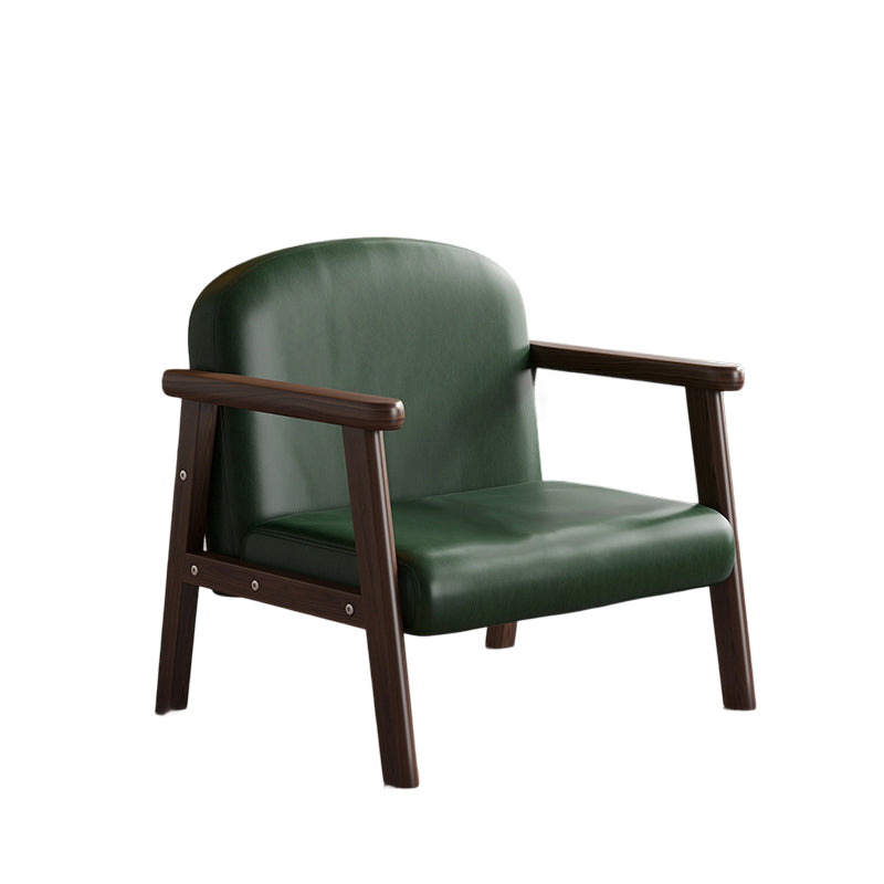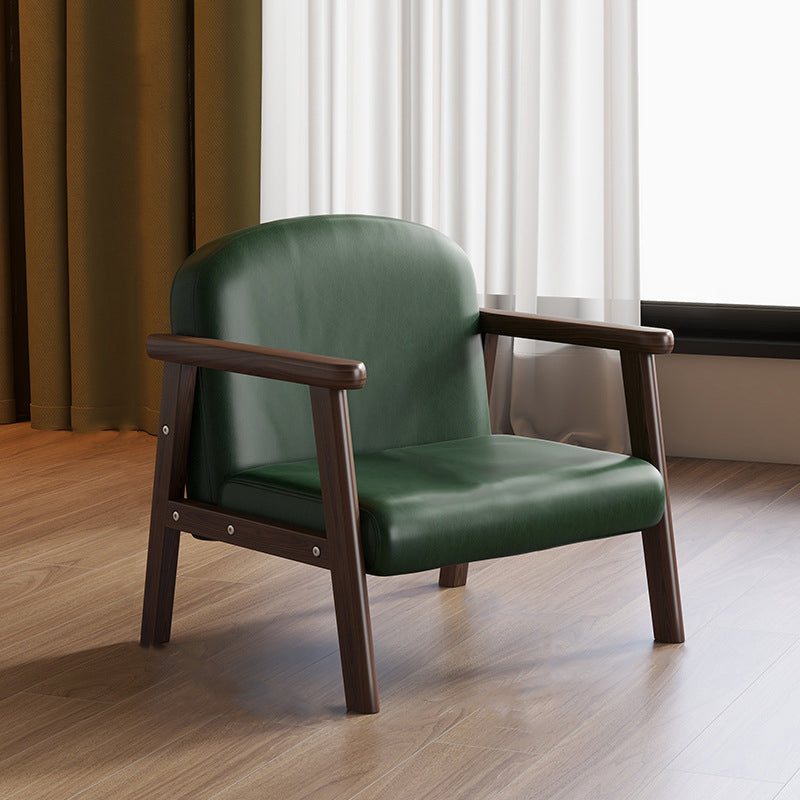 This Scandinavian-style single armchair features a solid rubberwood frame with soft sponge filling and two upholstery options --- smooth faux oil-wax leather or cozy plush fabric. Designed with a curved back and armrests, this compact chair comes in green, brown, or panda styles, perfect for adding charm and comfort to any living room, bedroom, or reading nook.