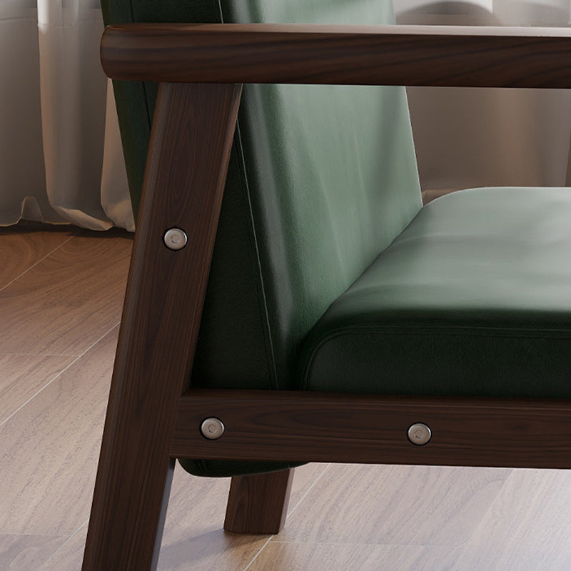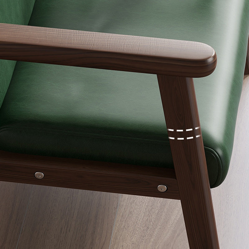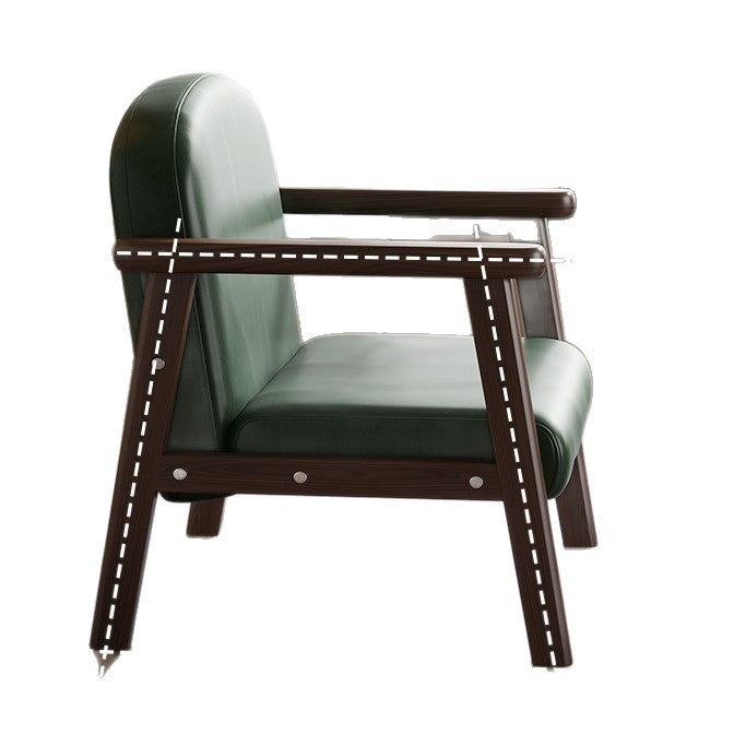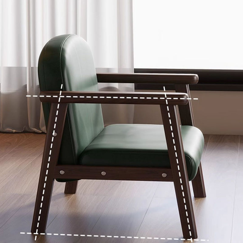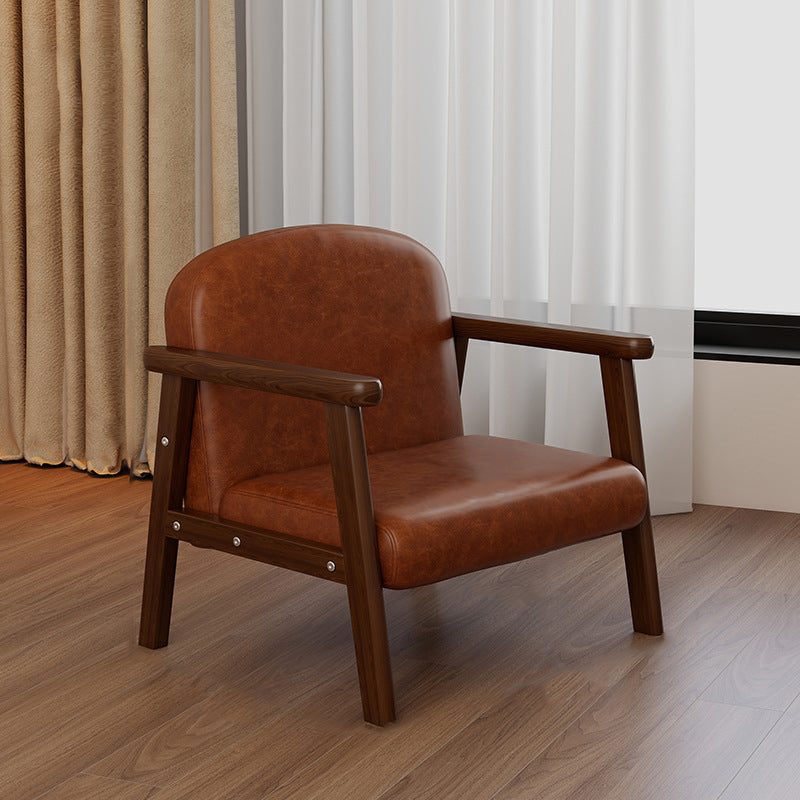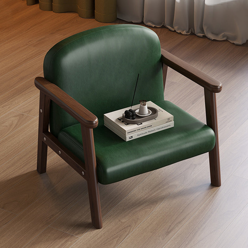 This Scandinavian-style single armchair features a solid rubberwood frame with soft sponge filling and two upholstery options --- smooth faux oil-wax leather or cozy plush fabric. Designed with a curved back and armrests, this compact chair comes in green, brown, or panda styles, perfect for adding charm and comfort to any living room, bedroom, or reading nook.