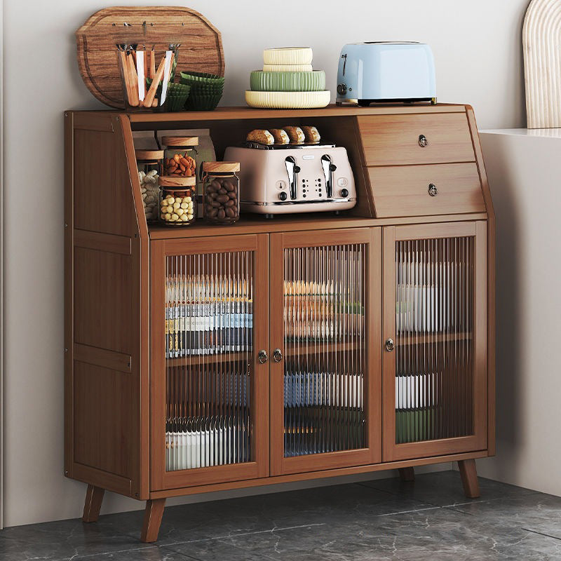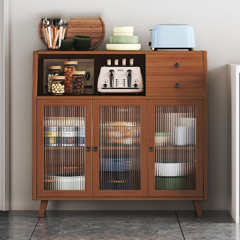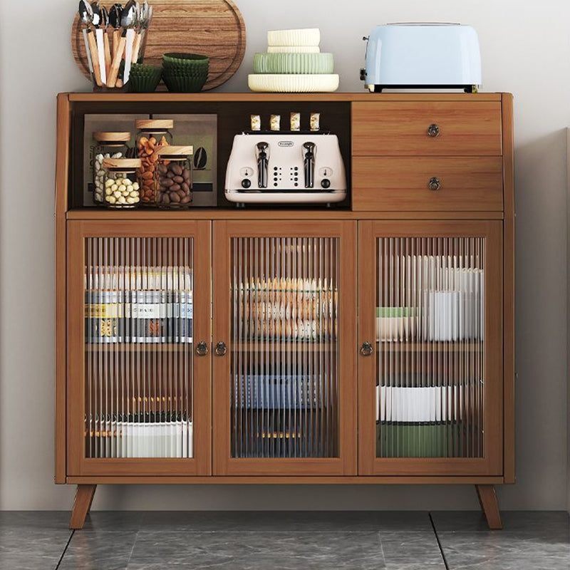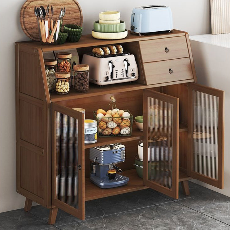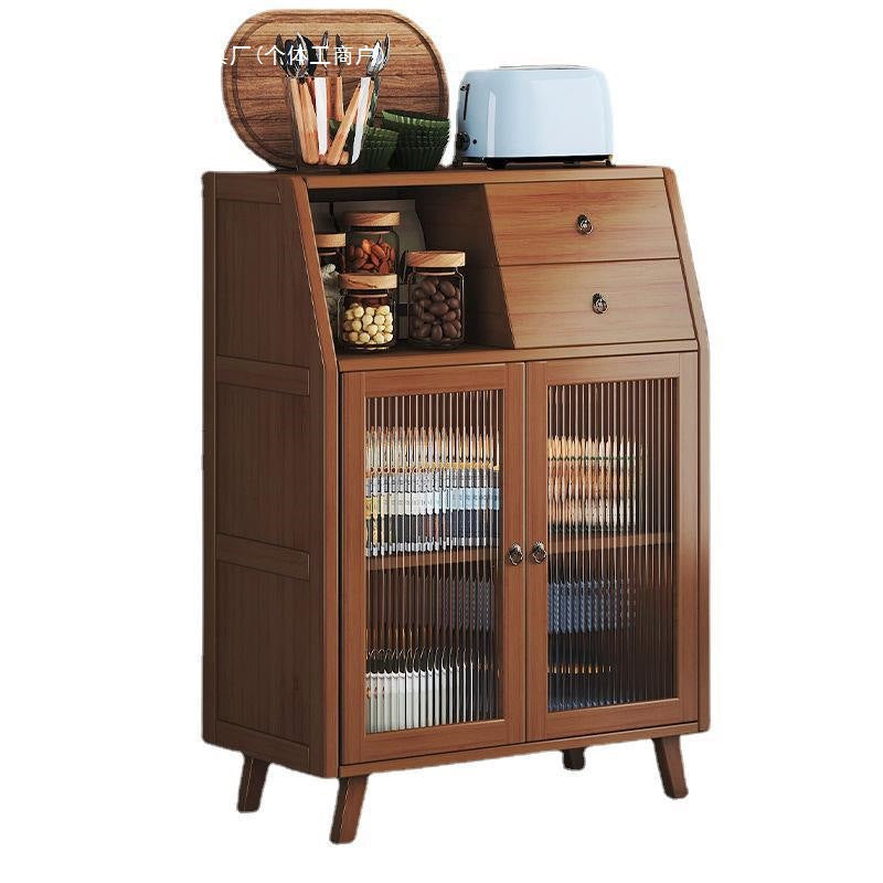 Contemporary Scandinavian Rectangular Bamboo Composite Board Acrylic Storage Cabinet 2-Drawer For Dining Room