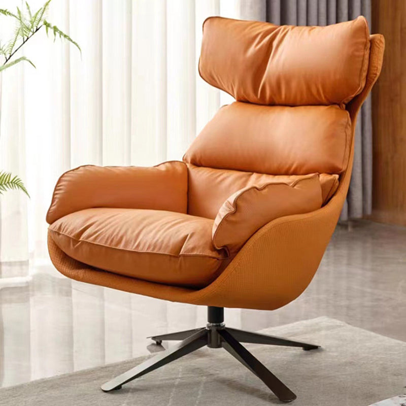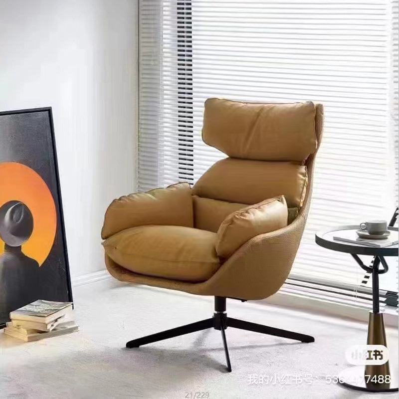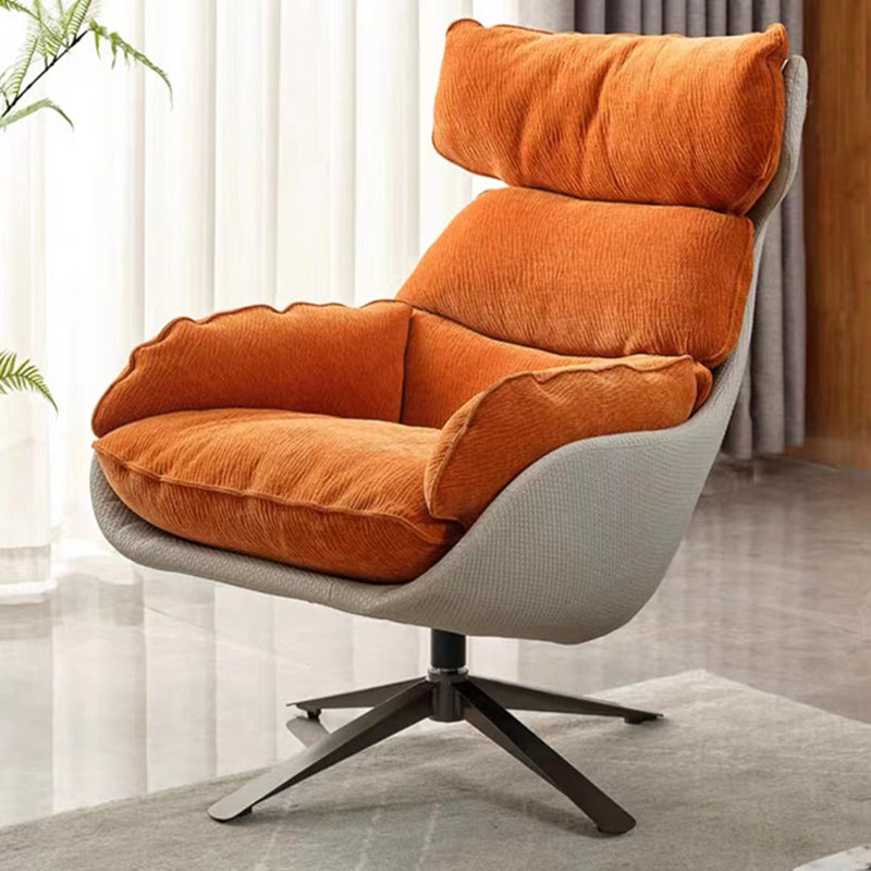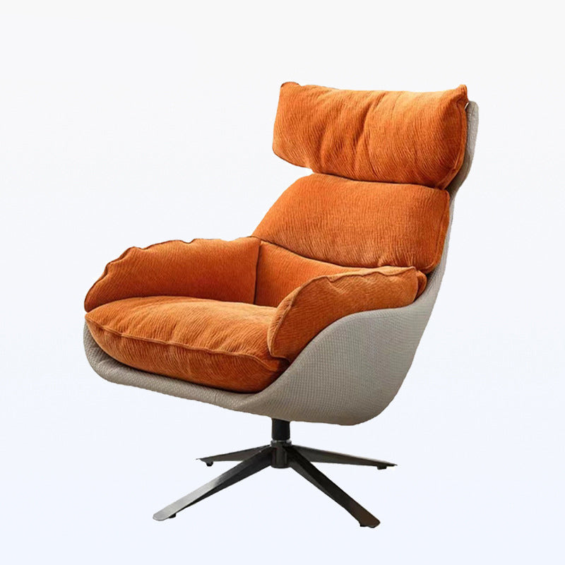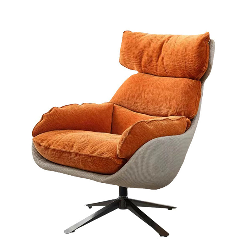 This Scandinavian-style swivel leisure chair features a curved wrap-around backrest and plush down-filled cushioning for ultimate comfort. Crafted from soft velvet, microfiber leather, and durable carbon steel, it offers stability and modern charm—available in deep green, yellow, orange, and blue for stylish living rooms or cozy balconies.