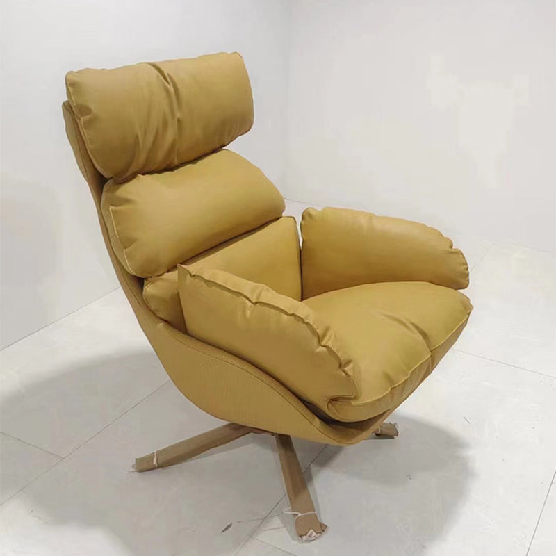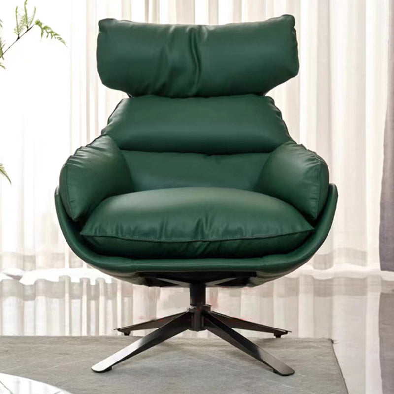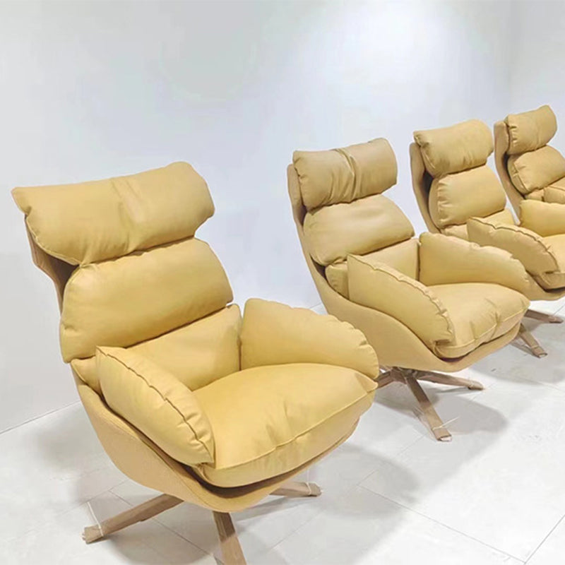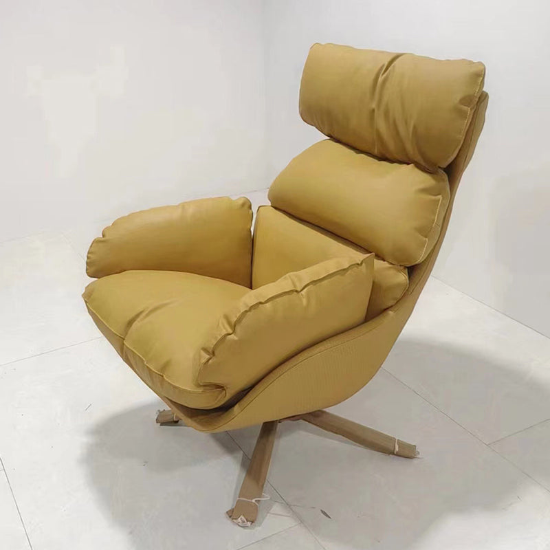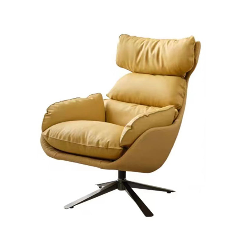This Scandinavian-style swivel leisure chair features a curved wrap-around backrest and plush down-filled cushioning for ultimate comfort. Crafted from soft velvet, microfiber leather, and durable carbon steel, it offers stability and modern charm—available in deep green, yellow, orange, and blue for stylish living rooms or cozy balconies.