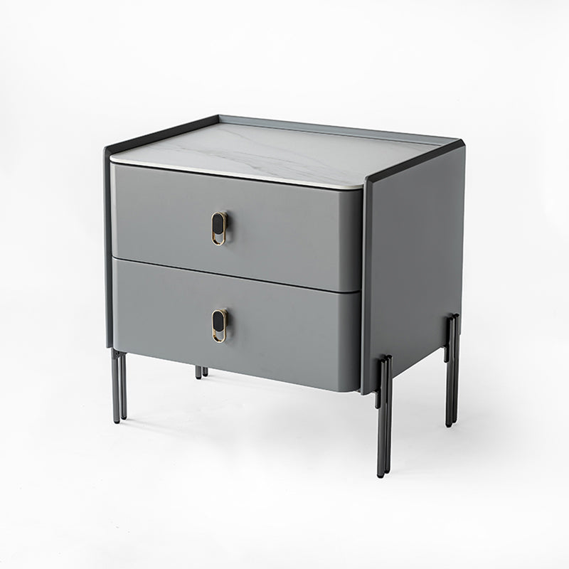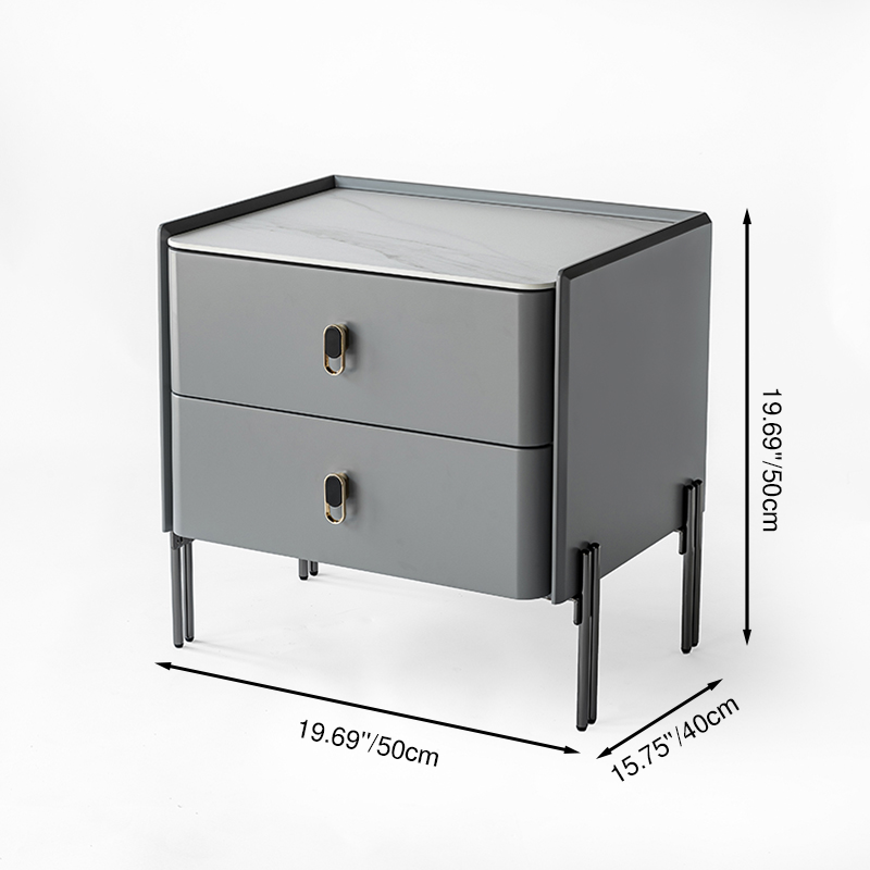 Eco-Friendly Scandinavian Nightstand - Rock Slab Tabletop & Corrosion-Resistant Legs Bedside Table 2-Drawer For Bedroom