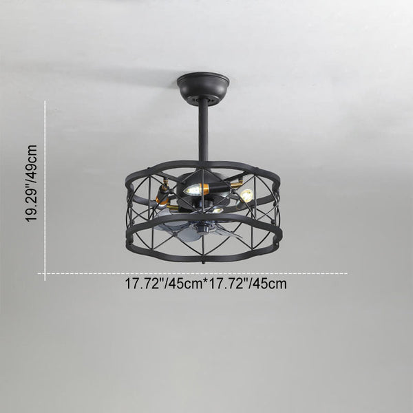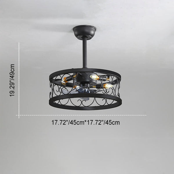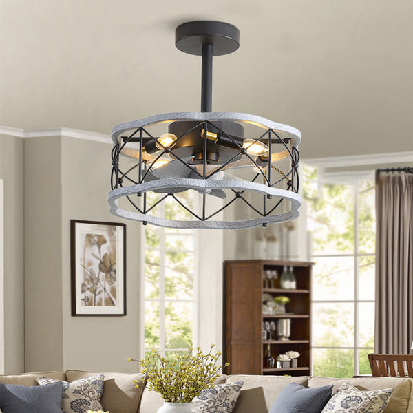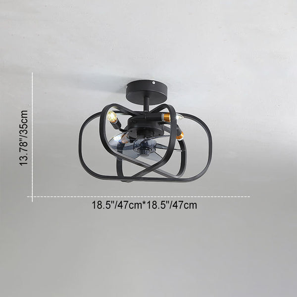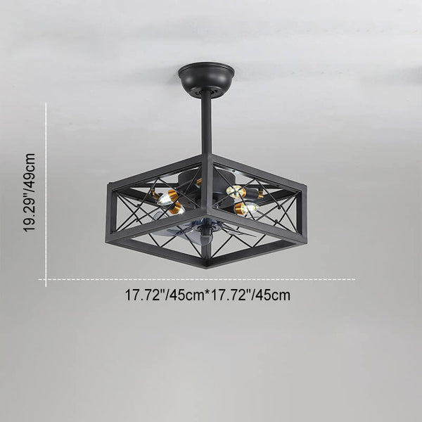 Industrieller Minimalistischer Kupfer Eisen Runde Quadrat 4-Licht Semi-Flush Mount Deckenventilator Licht