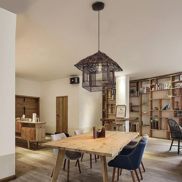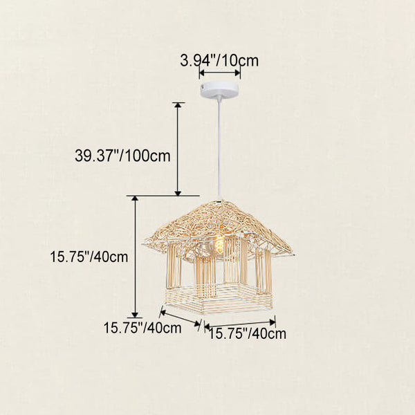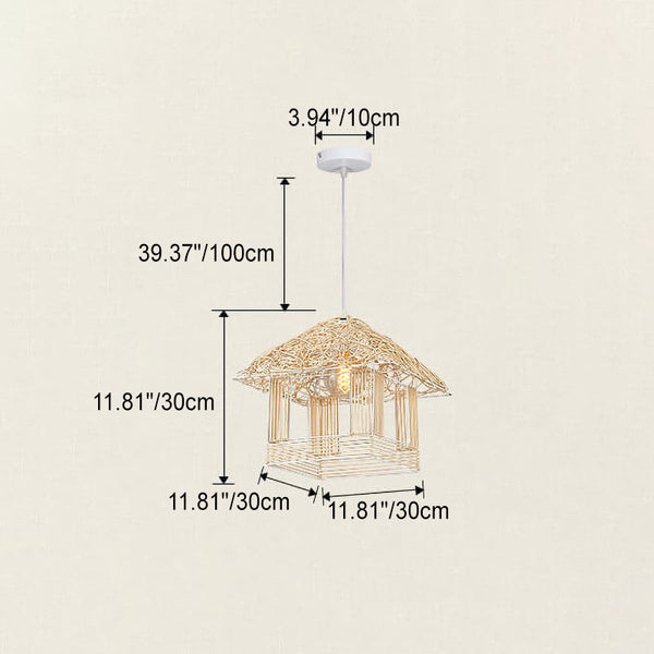 Kreativer handgefertigter Rattan-Webkäfig 1-Licht Pendelleuchte