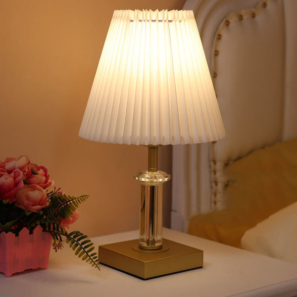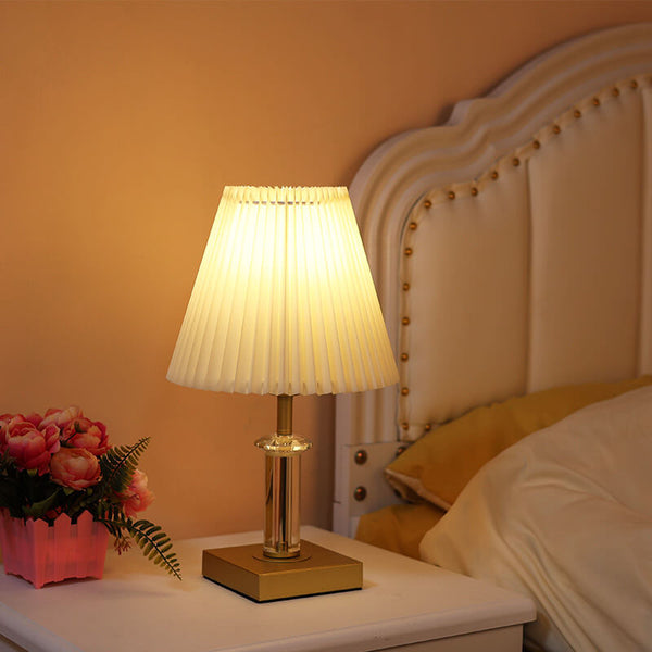 Moderner minimalistischer Kegel Faltenstoff Kristall Hardware 1-Licht Tischlampe