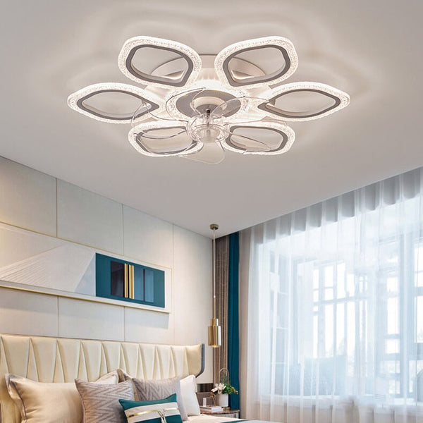 Skandinavischer moderner minimalistischer Blütenblätter-Eisen-Acryl-Kunststoff-LED-Deckenventilator-Licht