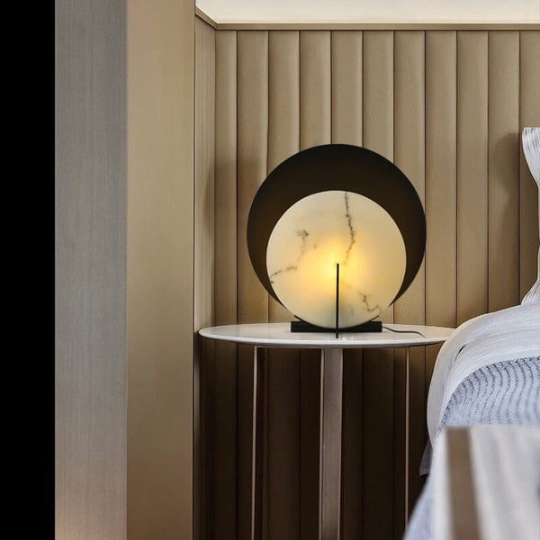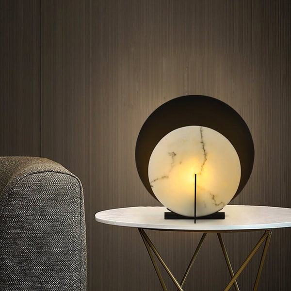 Zeitgenössische kreative Doppelscheiben-Marmor-Eisen-1-Licht-Tischlampe für das Schlafzimmer