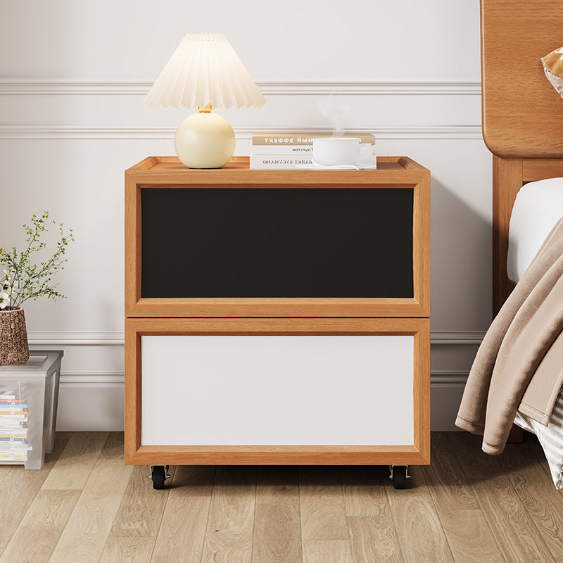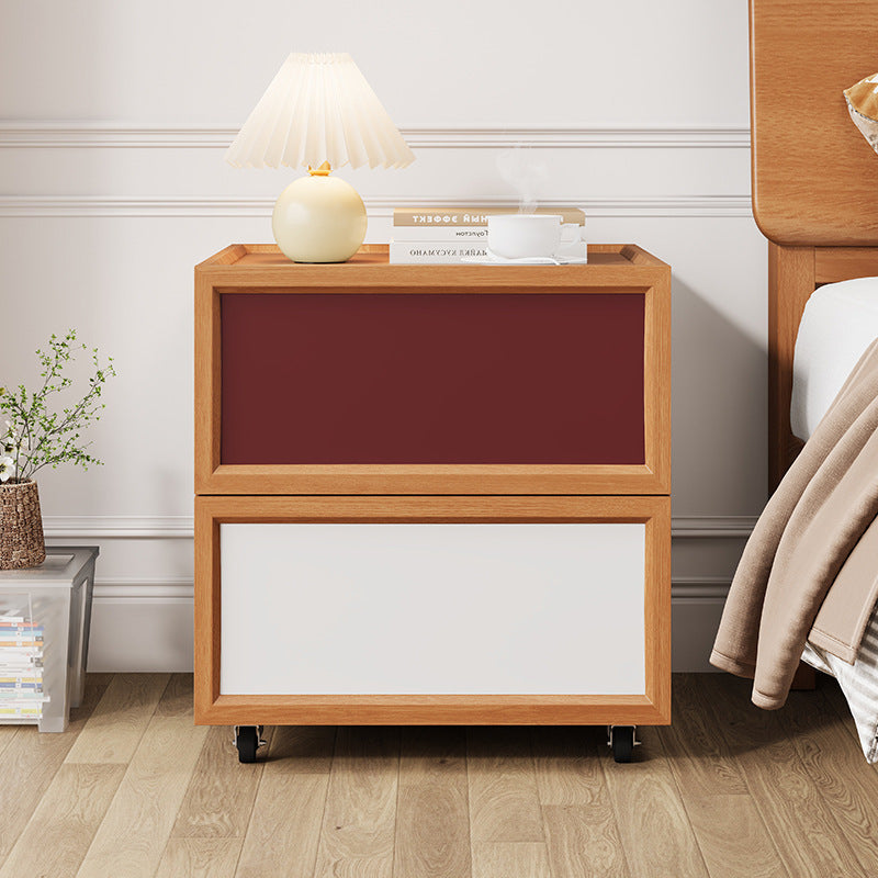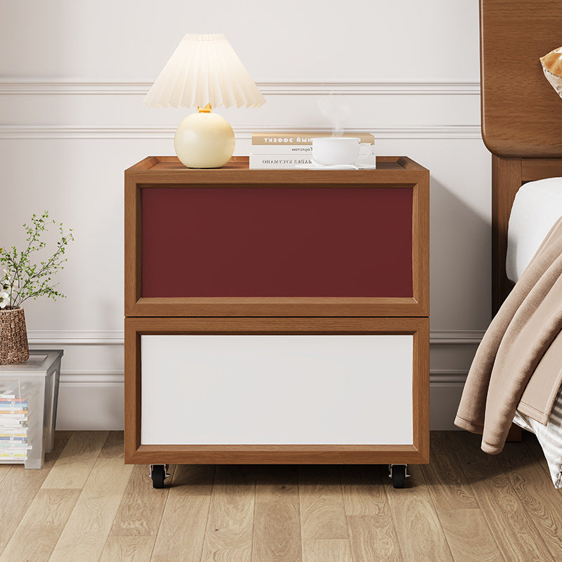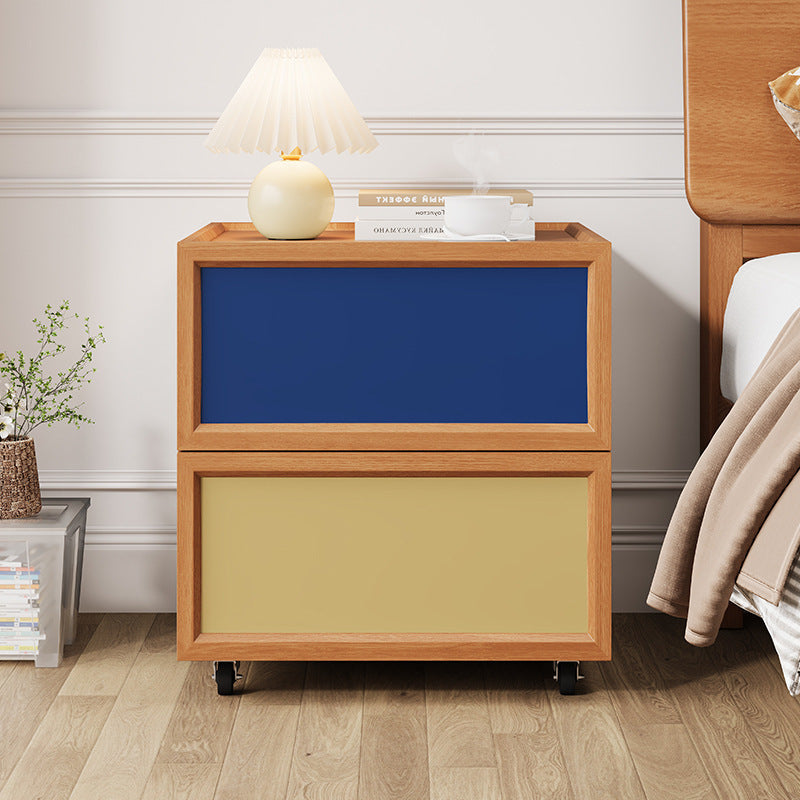 Enhance your bedroom’s versatility with this modern solid wood nightstand, expertly crafted for both durability and ease of movement. The design features two smooth-glide drawers for quiet operation and a raised-edge tabletop that provides a secure surface for your essentials. Supported by quiet 360° swivel casters, this piece offers easy mobility without compromising on strong load-bearing stability. Available in a vibrant spectrum including blue, yellow, black, white, red, beech, or walnut finishes, it is the perfect blend of functional storage and stylish design.