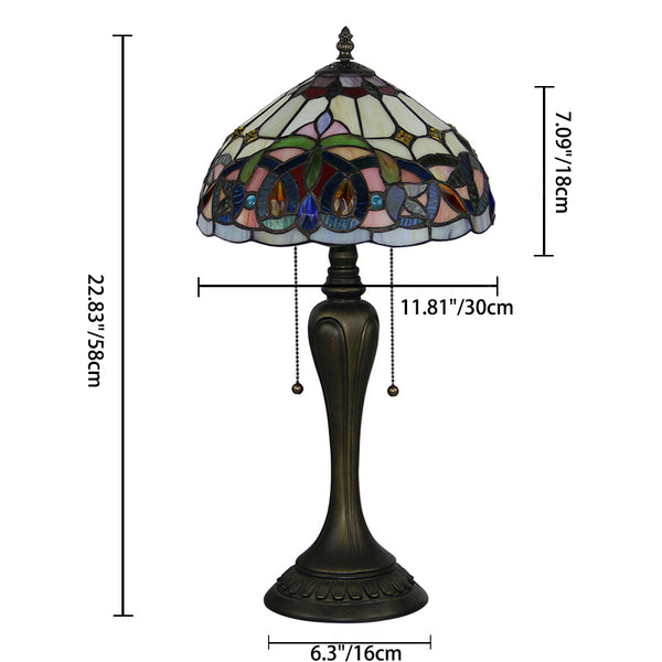 Vintage Tiffany Mediterranes Buntglas 1-Licht Tischlampe