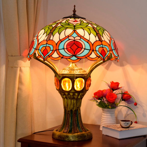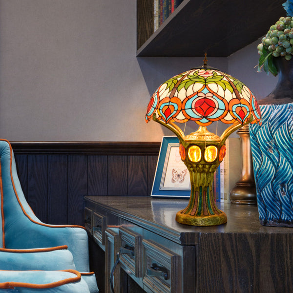 Vintage Tiffany Mediterranes Buntglas 1-Licht Tischlampe