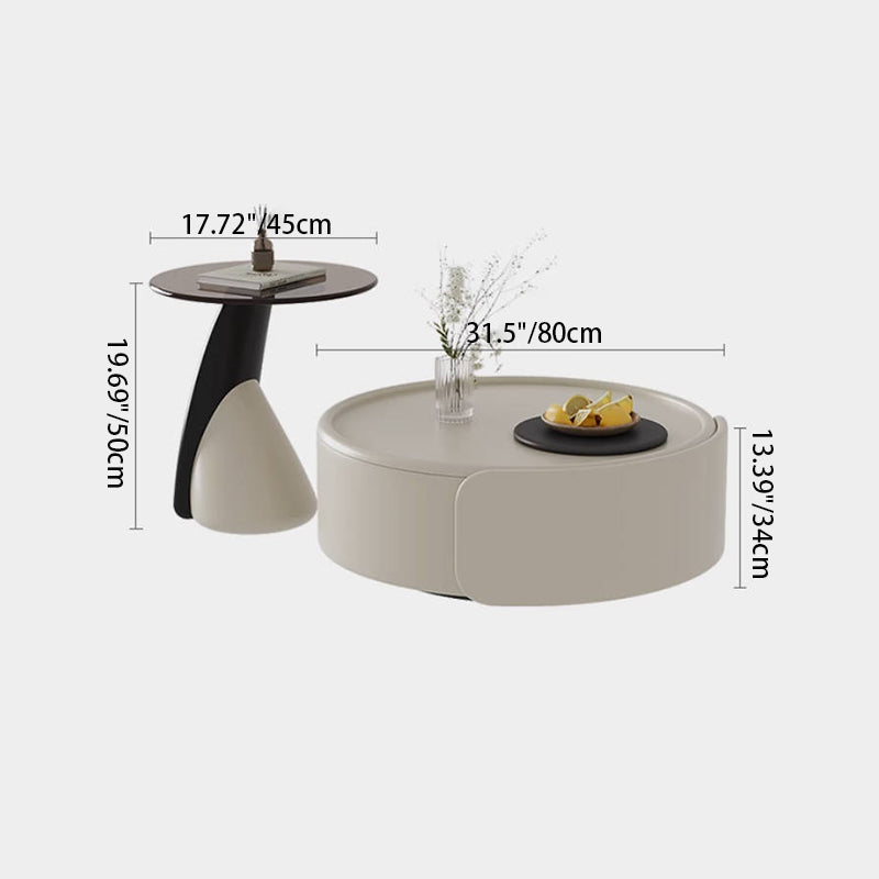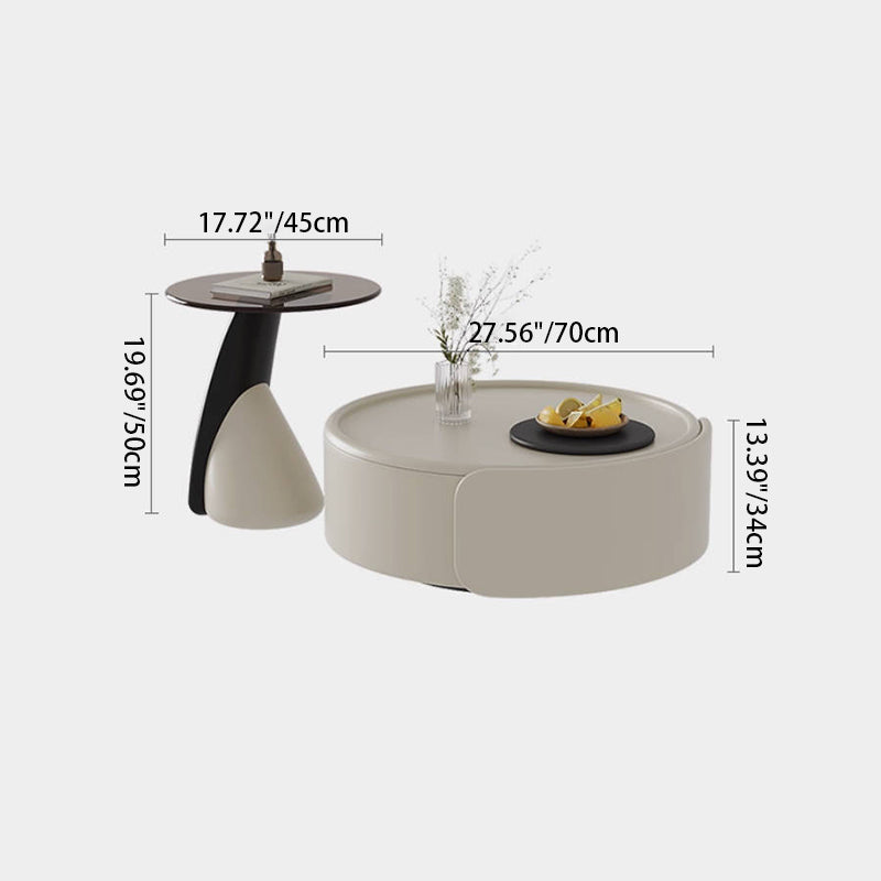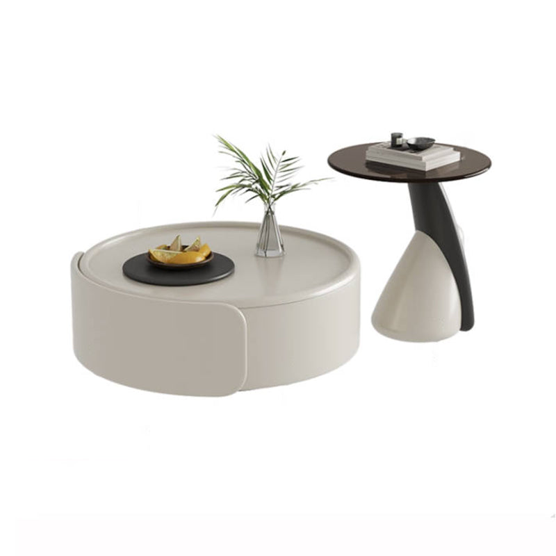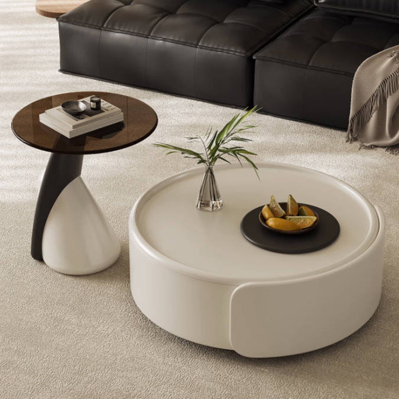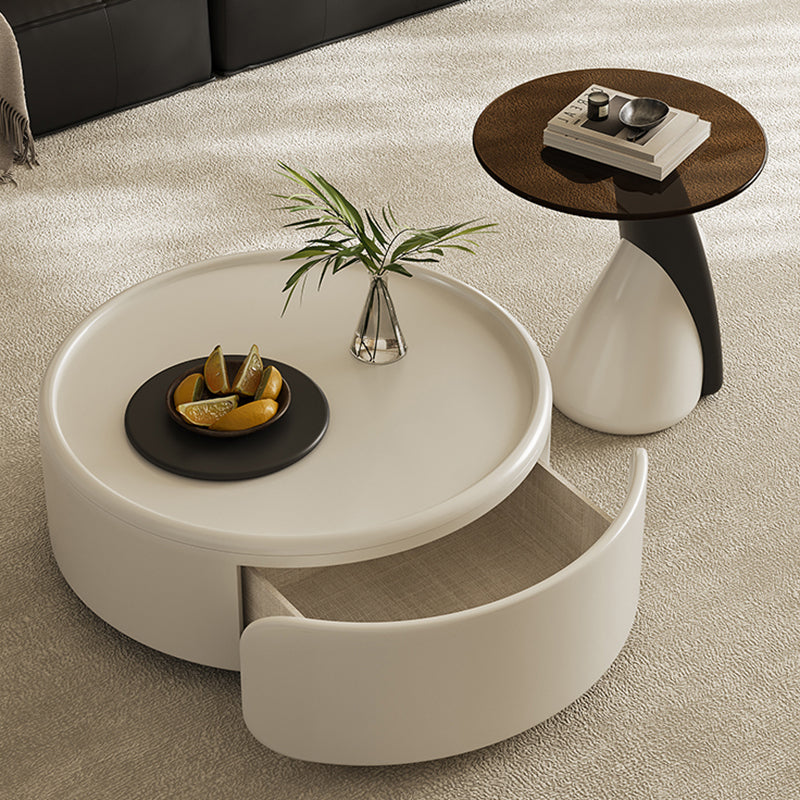 Contemporary Scandinavian Round Multi-Layer Solid Wood Panel Tempered Glass Fiberglass Coffee Table Combination With 1-Drawer For Living Room