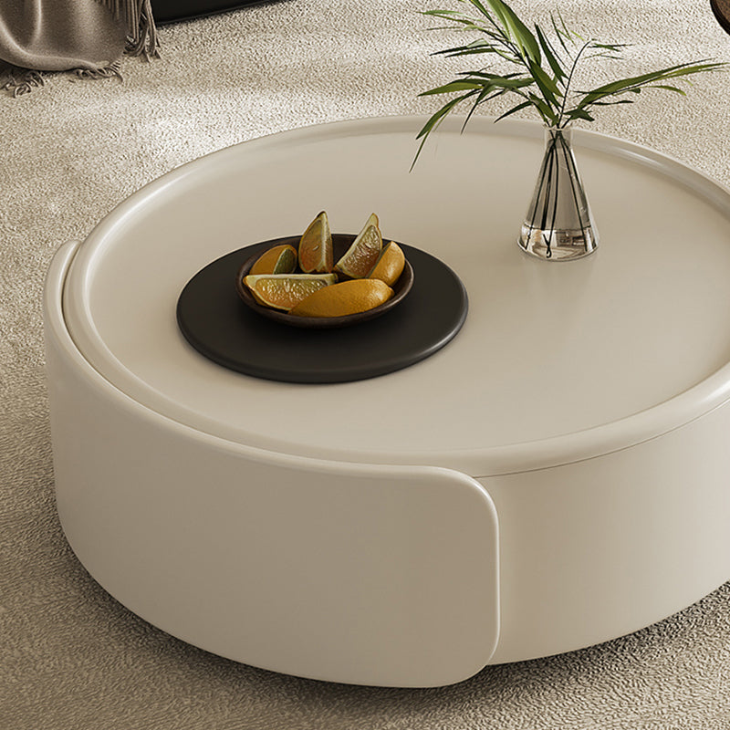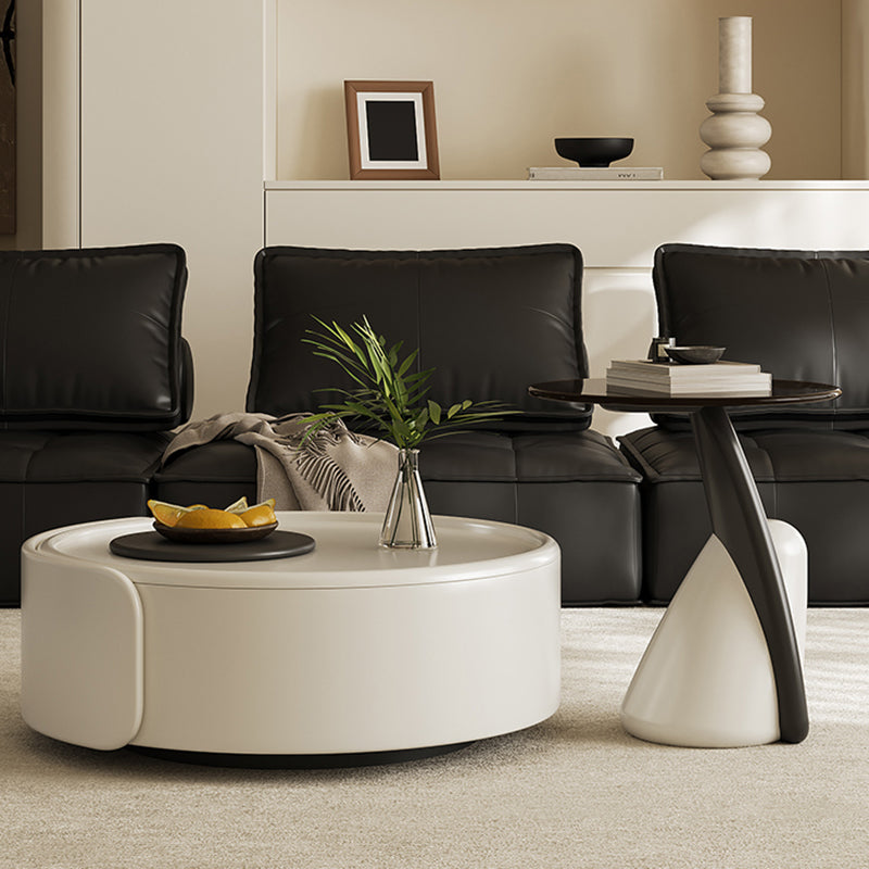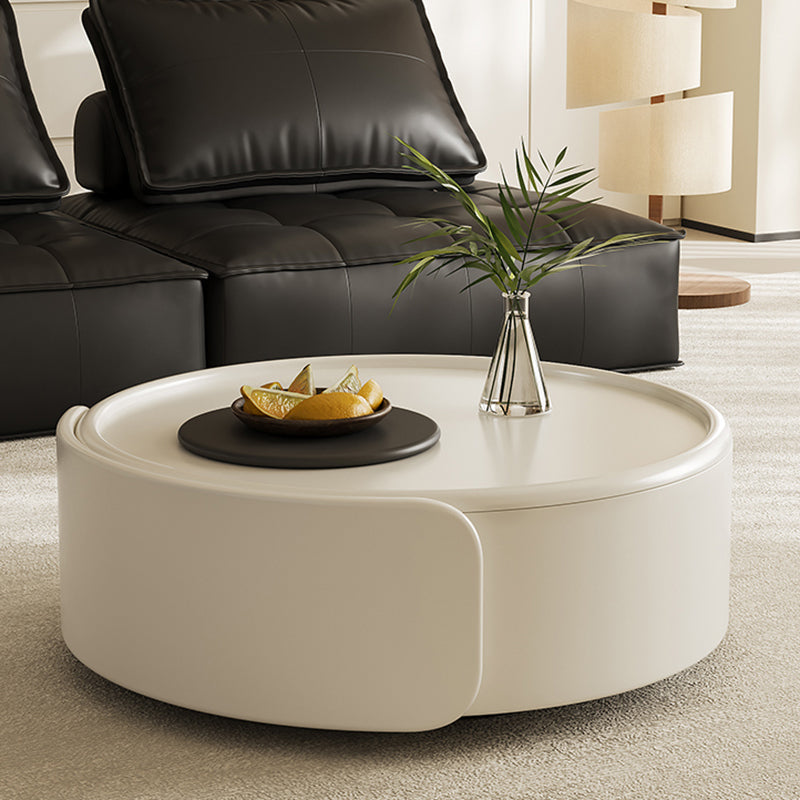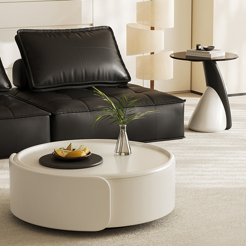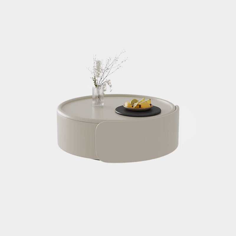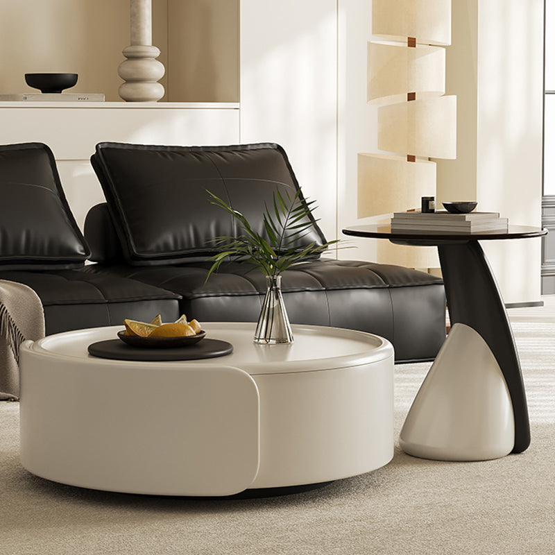 Contemporary Scandinavian Round Multi-Layer Solid Wood Panel Tempered Glass Fiberglass Coffee Table Combination With 1-Drawer For Living Room
