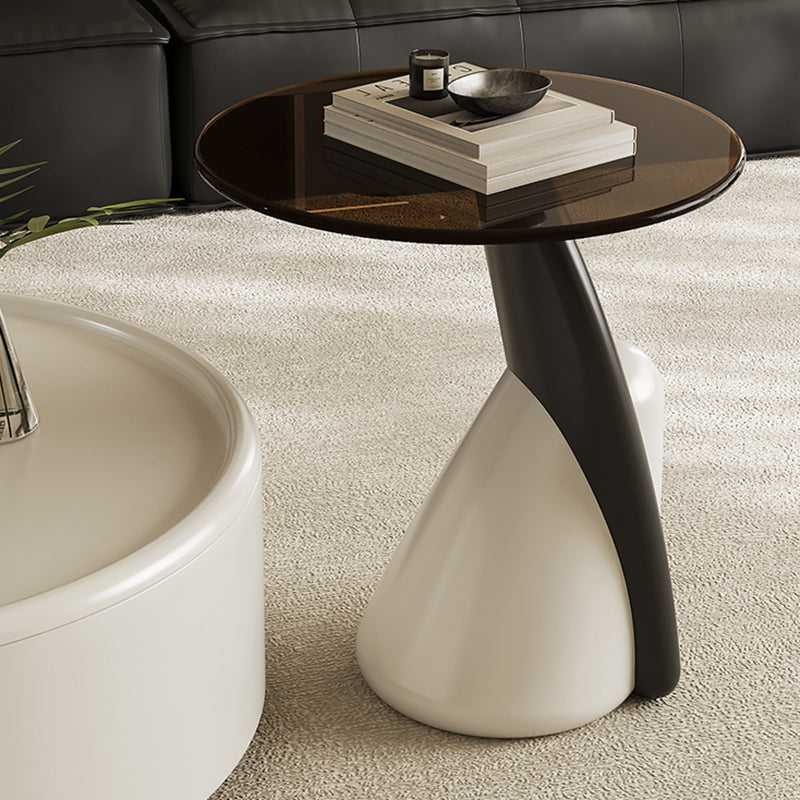 Introducing a masterpiece of functional elegance, this contemporary Nordic round coffee table embodies pure Italian minimalist design. The construction is a premium blend of materials, featuring a smooth, high-gloss lacquered engineered wood body and a resilient tempered glass top that offers a refined surface for drinks and décor. The entire piece is supported by a stable and visually striking fiberglass base, guaranteeing both durability and an artistic, modern silhouette.