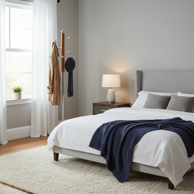 If you want to keep your bedroom neat and clutter-free, this coat rack is a smart choice.