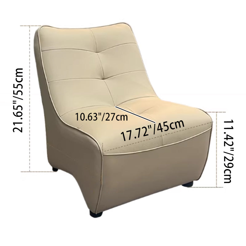 Embodying a sleek, minimalist aesthetic, this modern accent armchair combines a compact rectangular silhouette with premium functionality. The armless design and supportive backrest are meticulously crafted over a solid wood frame, upholstered in durable PU leather. To ensure lasting comfort, the seat is cushioned with high-resilience foam that retains its loft even with frequent use.