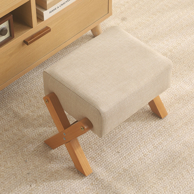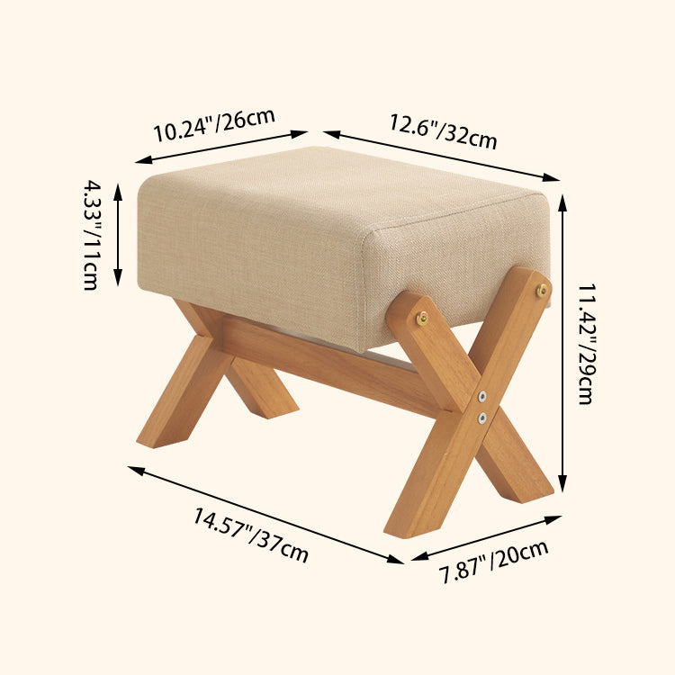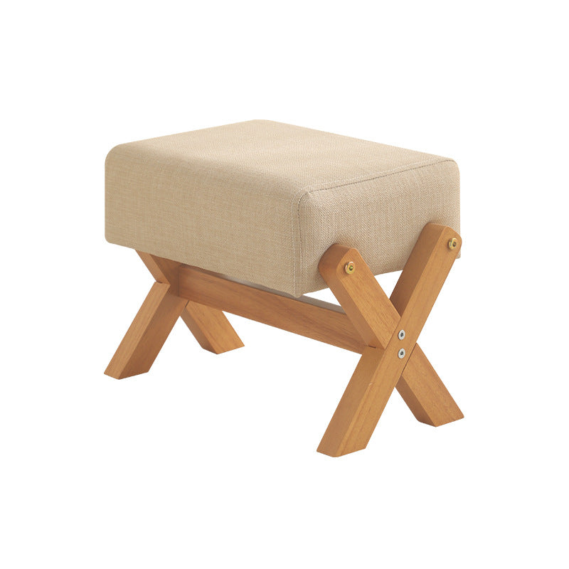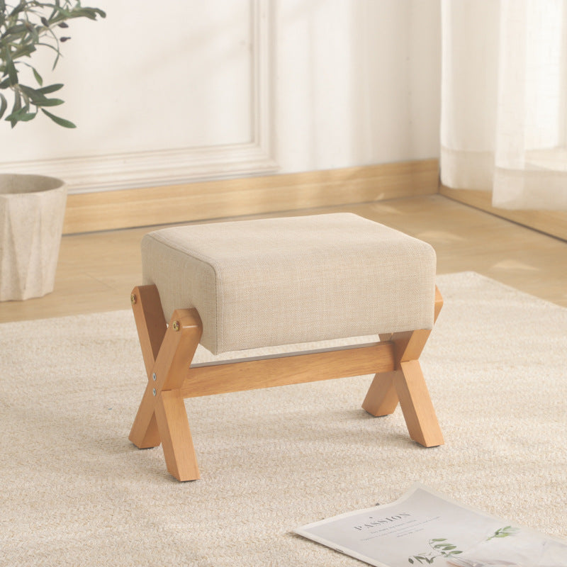 This modern minimalist stool features an X-shaped, square design with a thick padded seat in natural wood or walnut. Its anti-slip, silent feet provide comfortable, long-lasting seating for living room or entryway use.