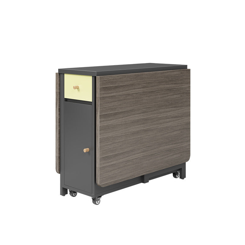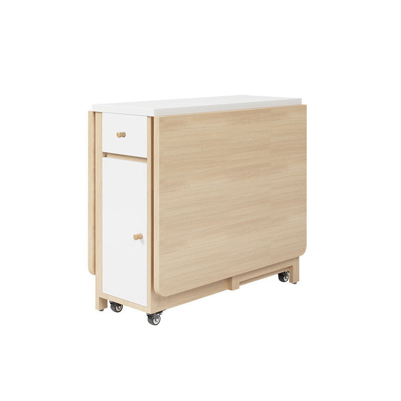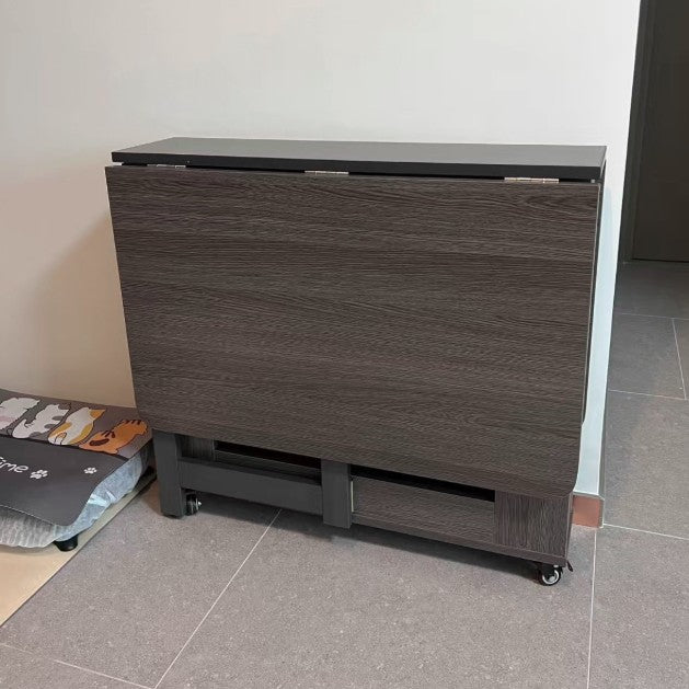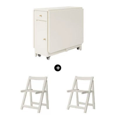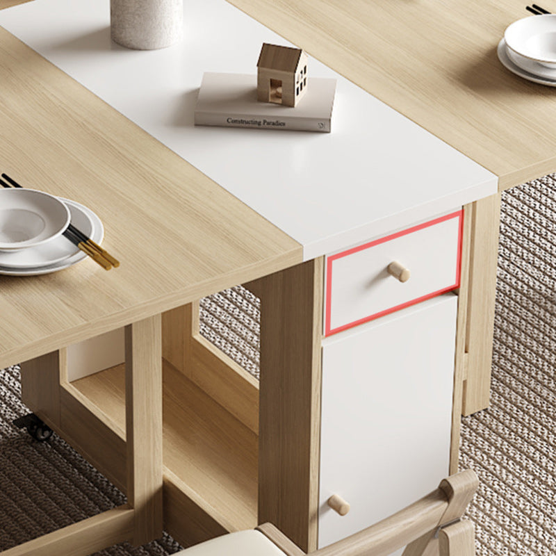 Modern Minimalist Square Rectangular E1 Environmental MDF Solid Wood Movable Foldable Dining Table & Dining Chair Set For 6 Seats